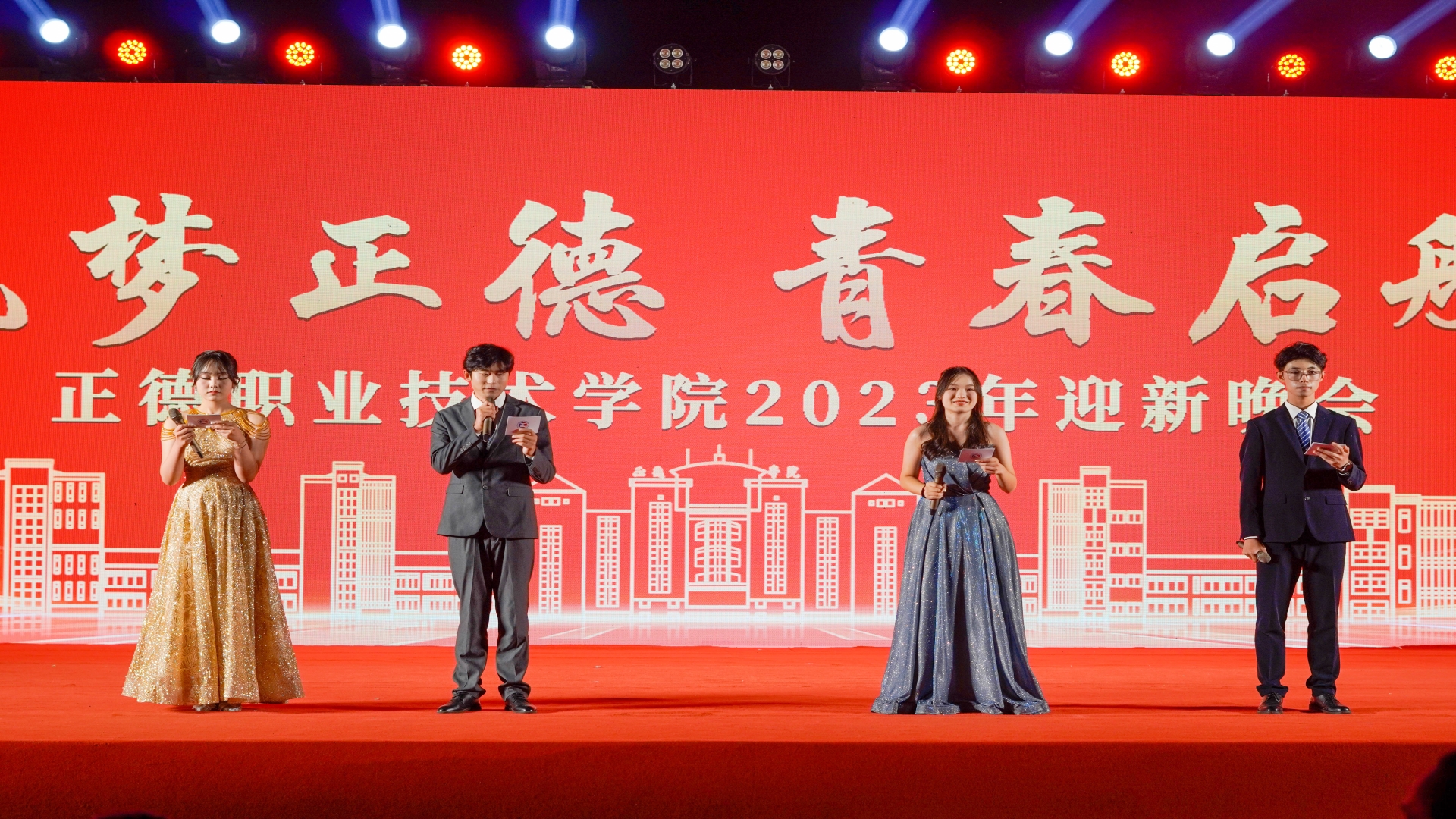 晚会最后在歌曲《如愿》的合唱声中结束,奔梦路上的全体2023级正德新生,衷心祝愿你们能在正德这片沃土上,向下扎根、向上生长,梦想启航,青春绽放。