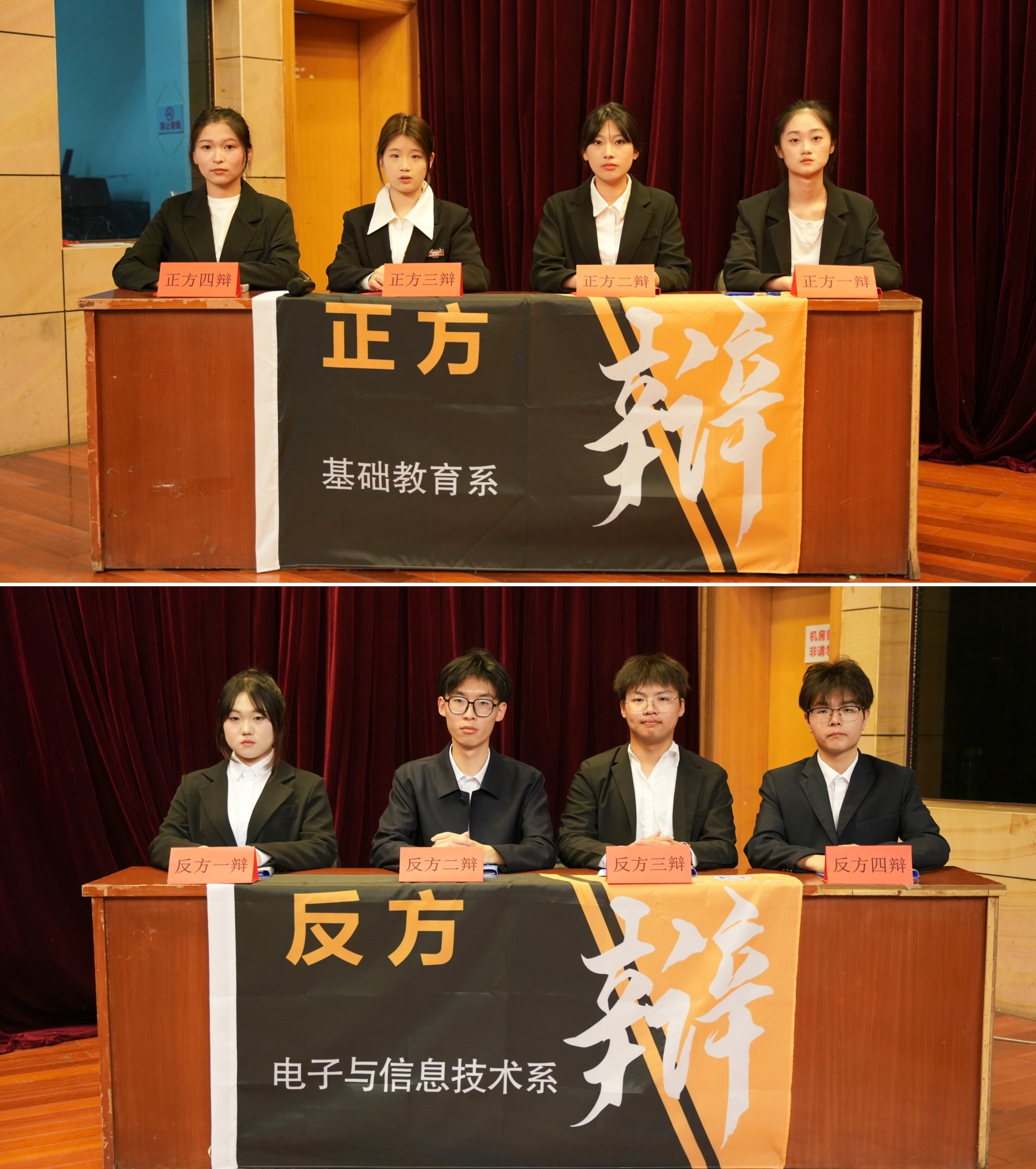 本届辩论赛分初赛、复赛、决赛,实行淘汰赛制,共六支队伍参加。辩题紧扣热点话题和av在线 学生思政工作重点,各系学生同场论辩、同台竞技,思想碰撞,火花四溢。经过前期在一站式社区进行的比赛,电子与信息技术系和基础教育系两支队伍的优秀辩手们脱颖而出,在决赛的舞台上进行了一场激烈的交锋。双方辩手针对辩题:“高职学生培养工匠精神,匠心修炼更重要还是匠行实践更重要”展开激烈辩论。双方辩手围绕论点、引经据典、妙语连珠、旁征博引,现场气氛热烈而紧张。双方辩手势均力敌,现场氛围热烈高涨。