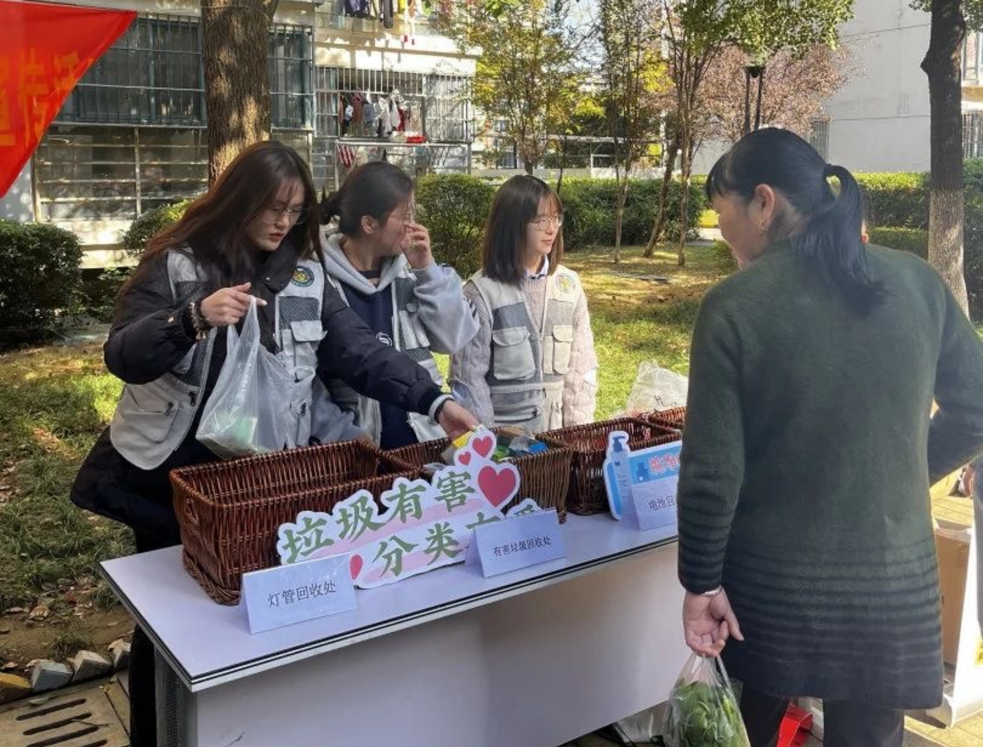 为进一步宣传垃圾分类,号召全民参与到垃圾分类中来。10月14日,院青年志愿者们前往莫愁湖街道兆园社区推行垃圾分类。垃圾分类关乎广大人民群众生活环境,关系资源节约使用,也是社区文明水平的重要体现,青年志愿者们通过普及垃圾分类常识,帮助居民树立“垃圾分类从我做起,人人有责”的绿色环保观念,让居民更加深刻地了解文明行为。