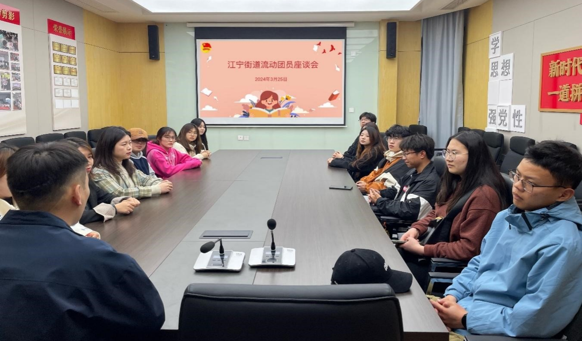 开一场座谈交流。江宁街道团干部代表先后领学了《习近平总书记在庆祝中国共产主义青年团成立100周年大会上的重要讲话》、《深化城市社区共青团改革 以社区团建“5×4”工作法汇聚基层社会治理青春力量的指导意见》。建议结对团支部之间要进一步加强交流学习,借鉴彼此好的经验做法,充分激发团员青年的活力和创造力,共同做好社区团建工作。