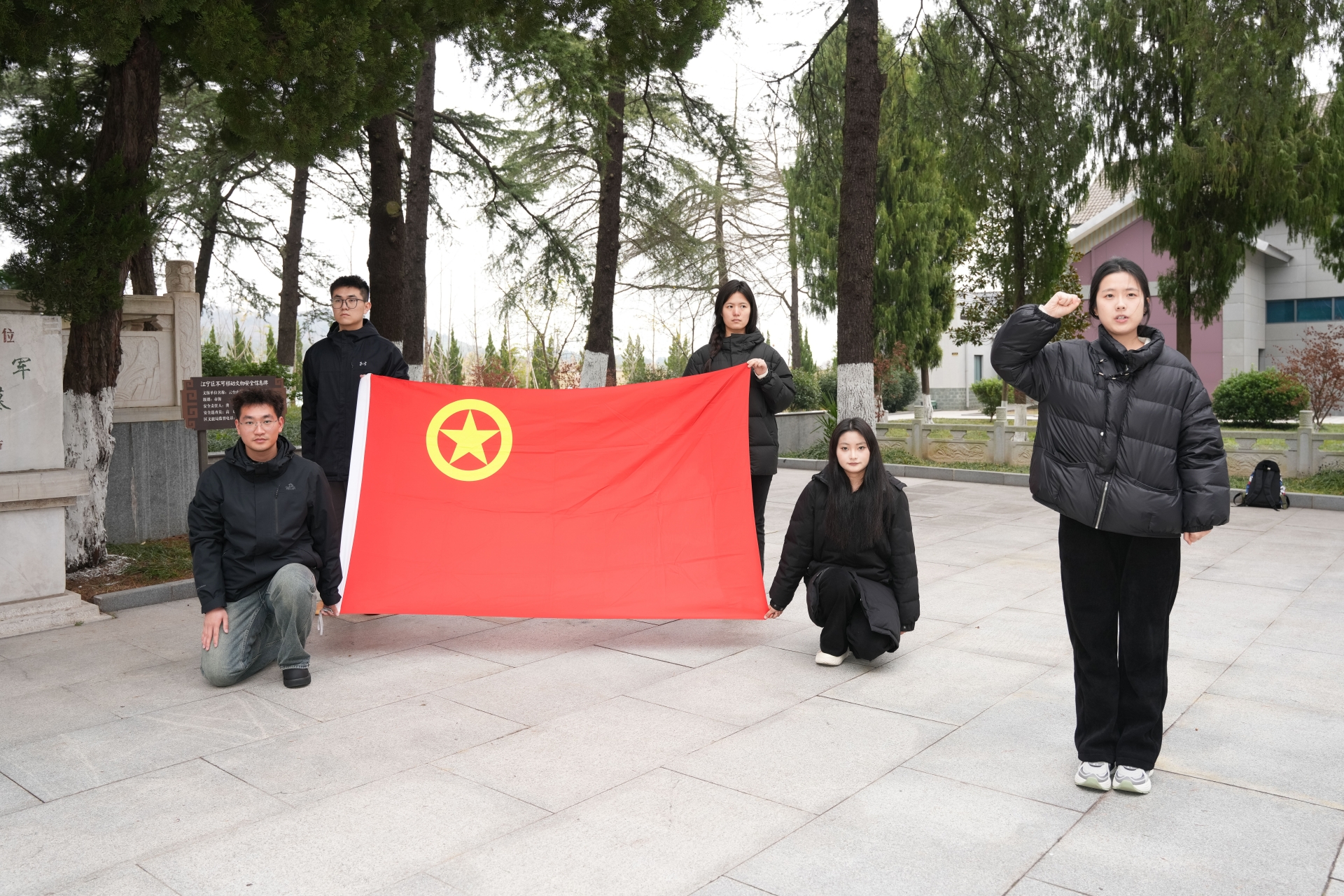 全体成员于纪念碑前肃立,为革命烈士默哀,向先烈们致以崇高的敬意,表达自己对先烈们的哀思。