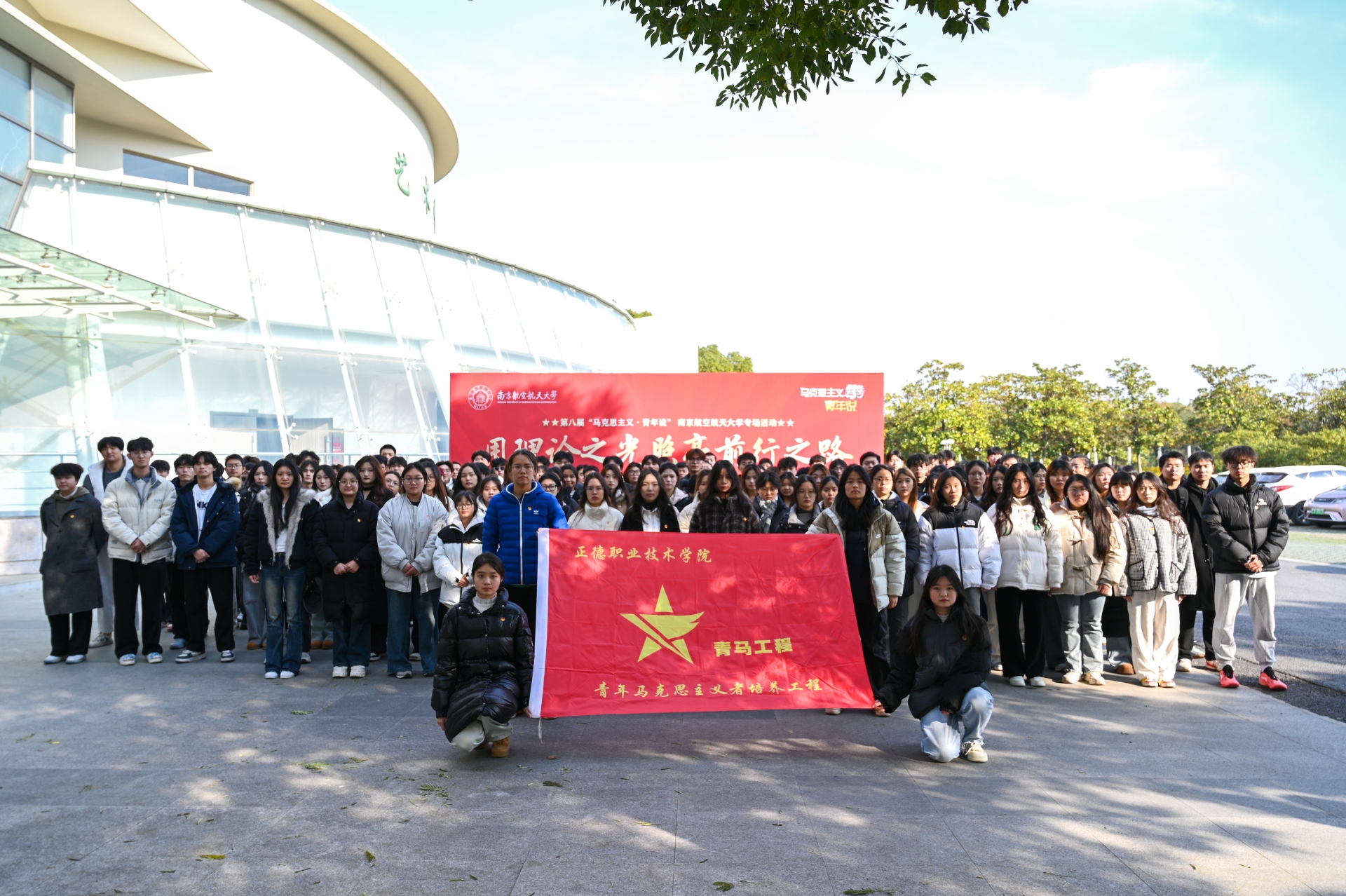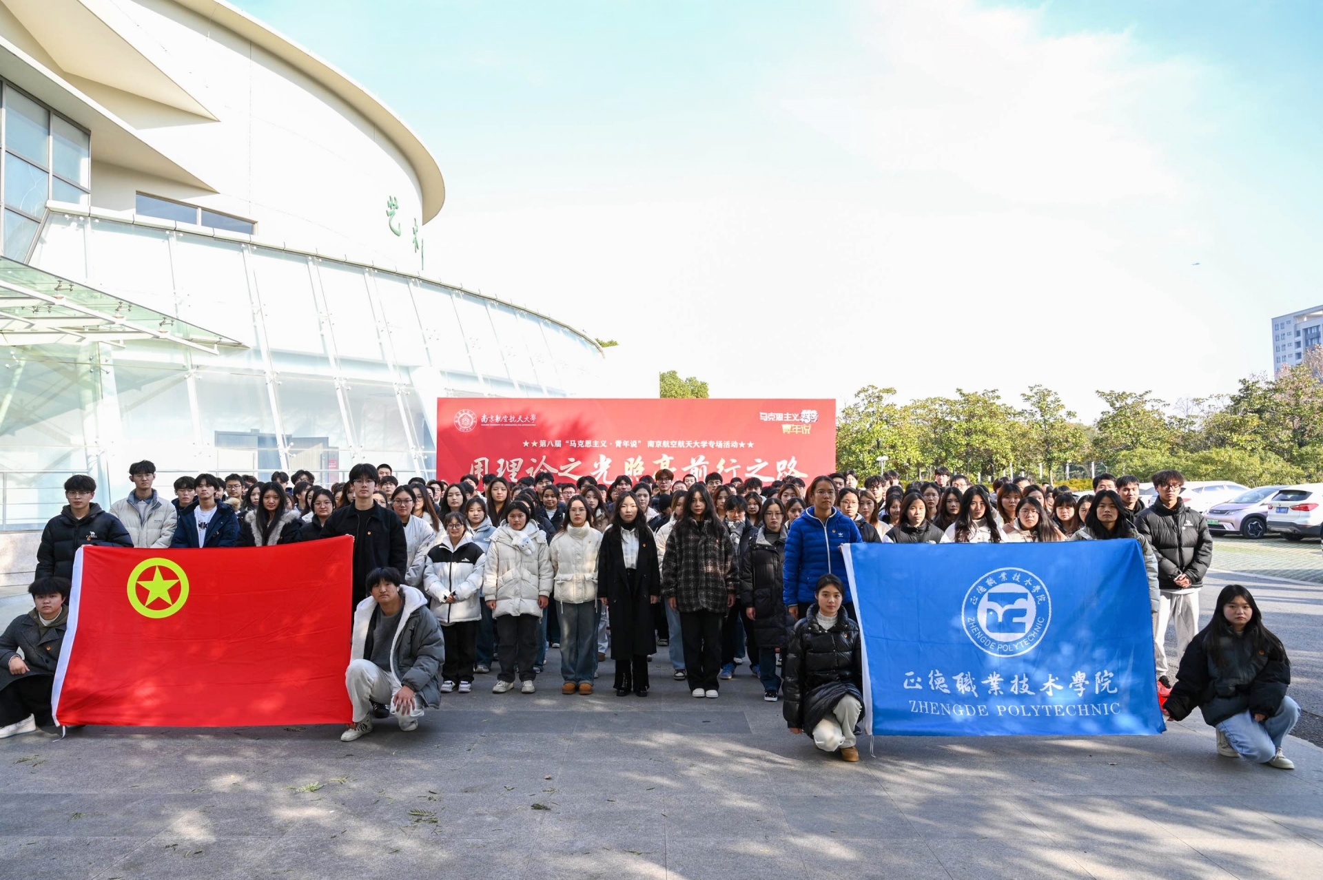 “科技强国,有我!民族复兴,有我!”12月20日,由省委宣传部、省委省级机关工委、省委教育工委、共青团江苏省委、新华报业传媒集团共同主办,新江苏传媒(中国江苏网)承办的第八届“马克思主义·青年说”活动走进南京航空航天大学。为团员青年们带去一场理论盛宴,引导他们在新时代的浪潮中,深刻领悟科学家精神,肩负起推动科技创新、实现科技强国的责任使命。av在线 团委副书记魏兴彪带领学院第十四期“青马工程”学员和系班团学骨干共150余人参加此次活动。