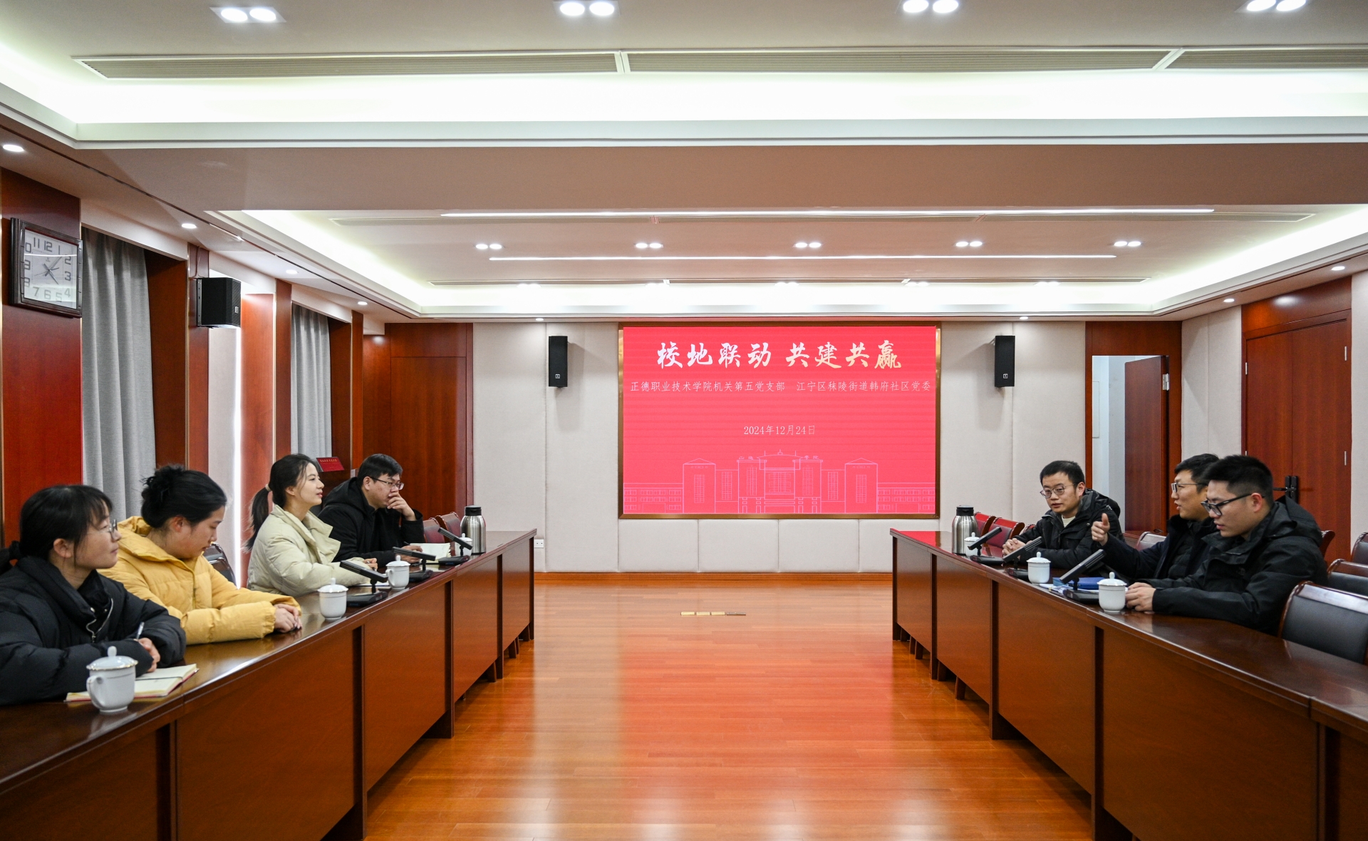 为进一步深化校地合作,强化“高校—社区”党团组织共建共促,共同打造资源共享、优势互补育人新模式。12月24日,av在线 团委与江宁区秣陵街道团工委在5201会议室举行“校地联动 共建共赢”党团共建座谈会。机关第五党支部书记、党委学工部部长祝佳俊、团委书记黄晓帆,秣陵街道团工委书记、韩府社区党支部书记张皓月等一行7人出席会议。