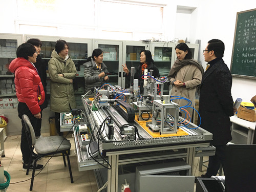 赵湘莲一行了解“自动化生产线安装与调试”团队备赛情况