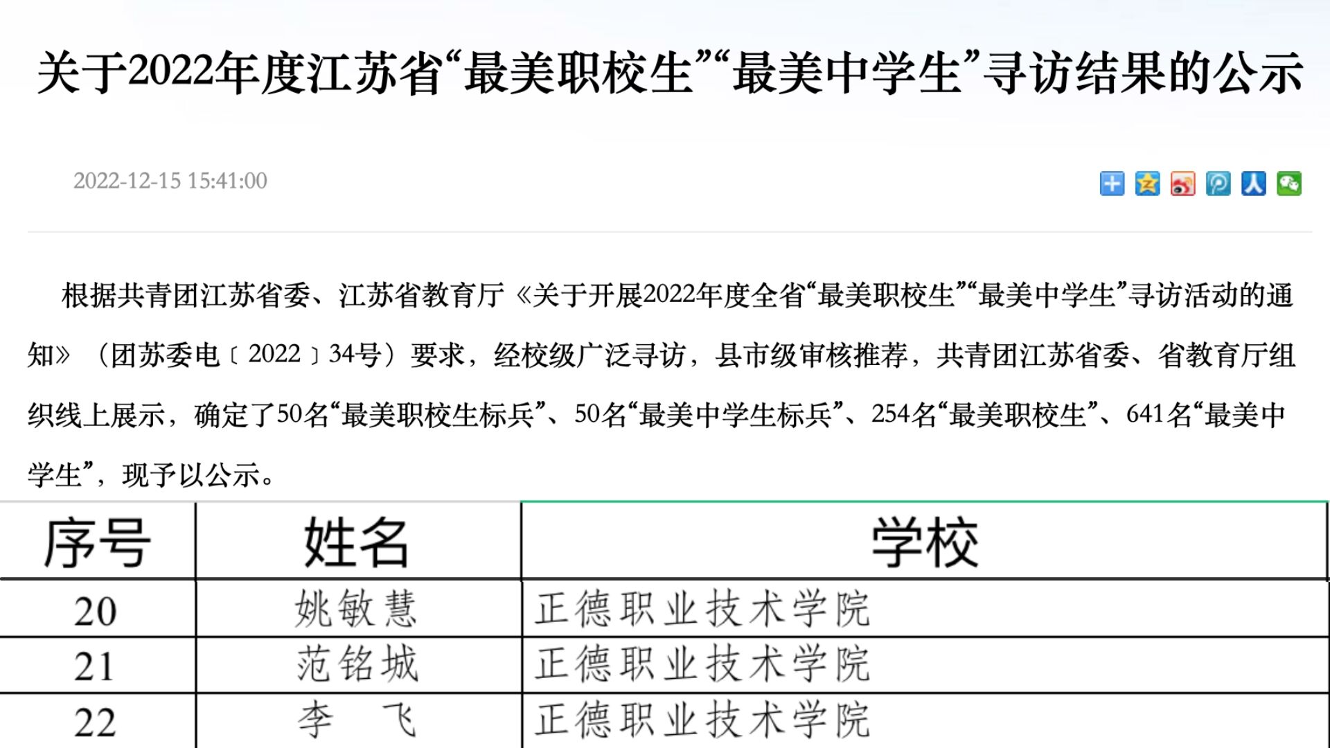 av在线 在江苏省“最美职校生”评选中再获佳绩