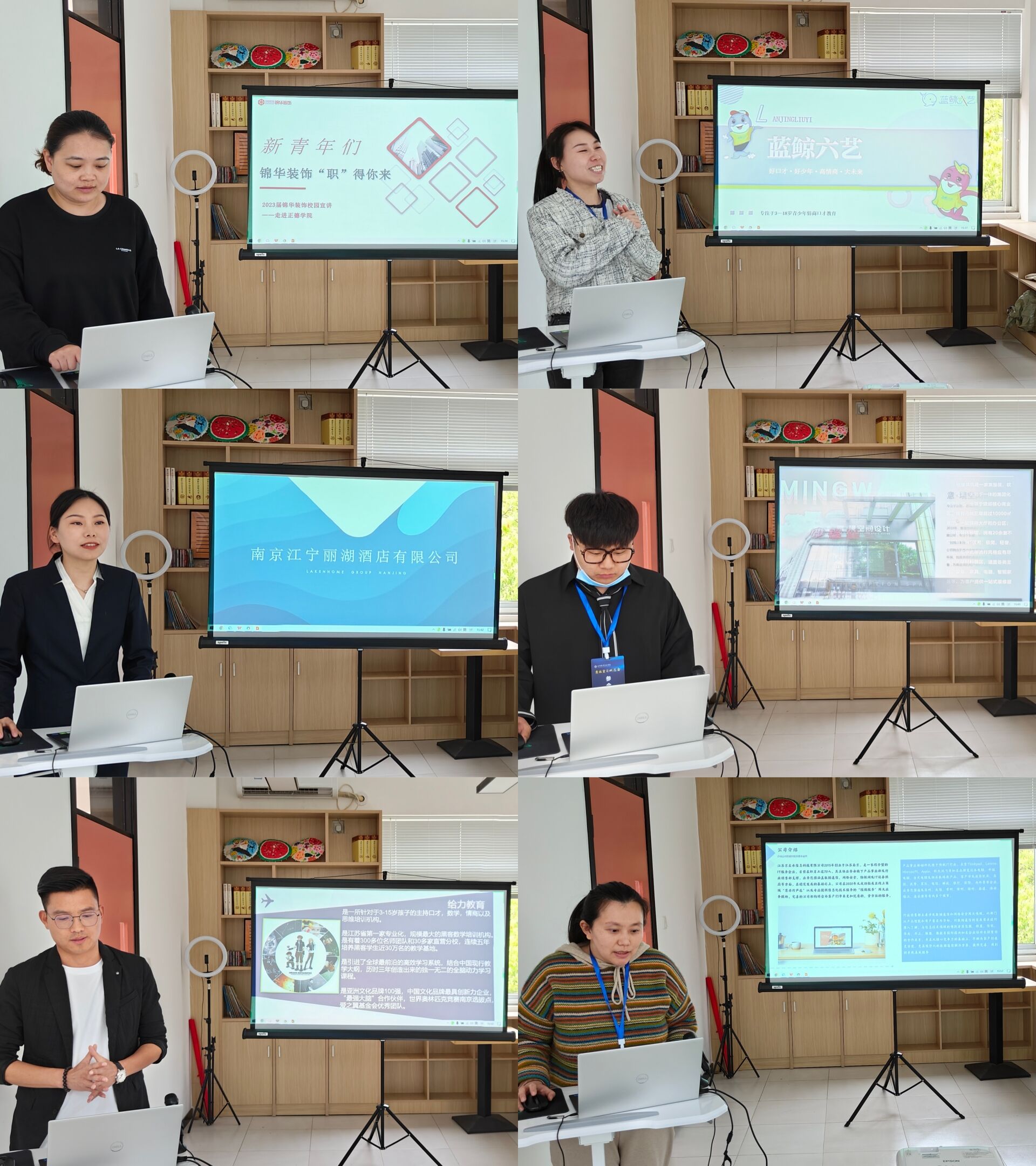 通过前期精心遴选,最终南京建策科技股份有限公司、江苏京启承信息科技有限公司、浙江一鸣食品有限公司、江苏柄堂实业有限公司、金陵饭店股份有限公司等12家优质企业参与现场直播荐岗,发布职位219个,吸引了近七百名学生在线收看。每家企业招聘负责人从企业概况、工作环境、薪酬福利、发展路径、培养体系等多方面进行了直播推介,使求职者全面了解招聘岗位信息和未来职业发展方向。后期,学院还将根据学生和企业需求对接好网络面试工作。