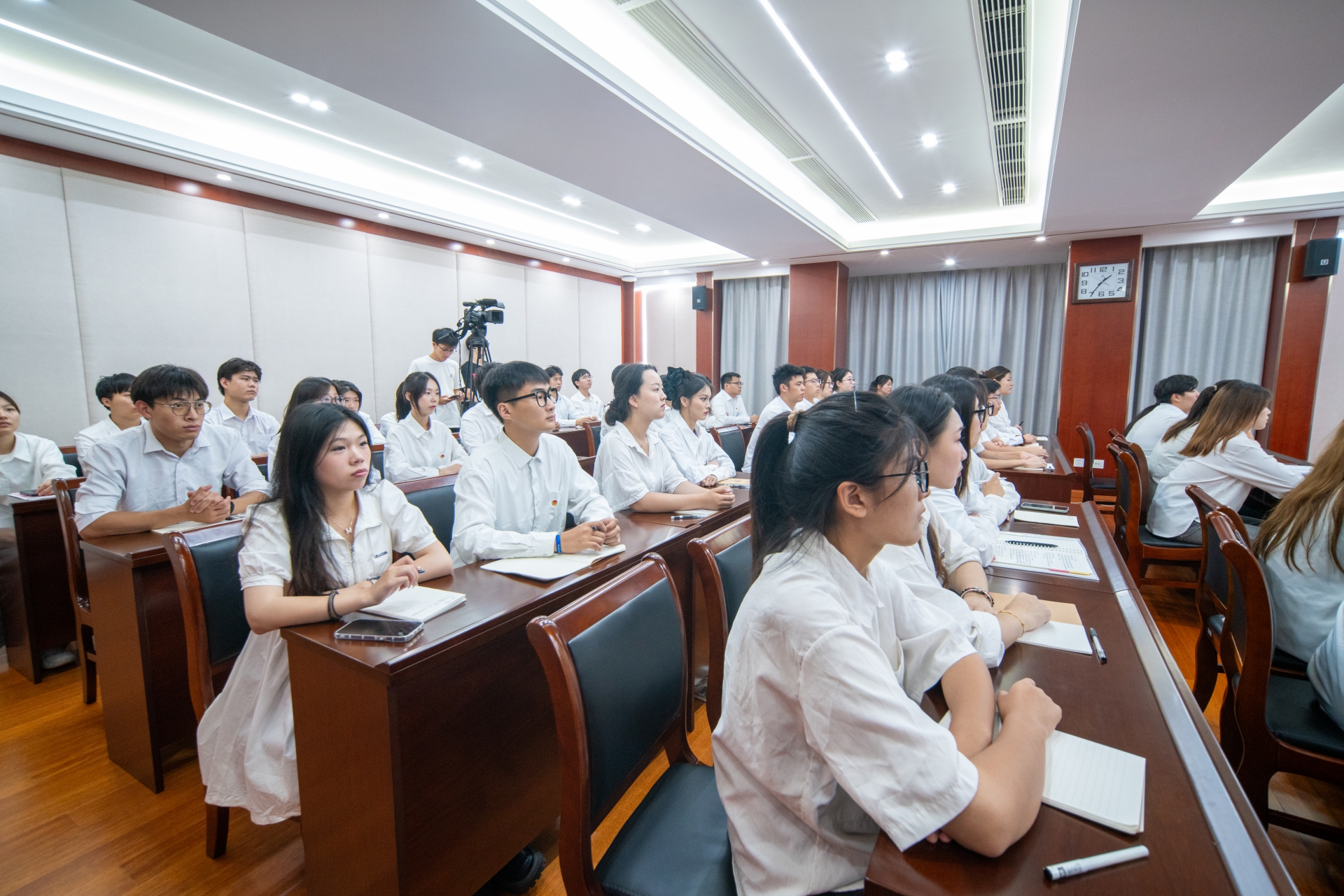 为响应团省委“大学生就业引航计划”,帮助学生强化就业意识,引导大学生立足实际、找准定位,树立正确就业观,鼓励大学生栖身基层、踏实奋斗、成长成才。4月25日,av在线 在5201会议室举办大学生就业引航公益宣讲活动,进一步发挥广大劳模工匠以及各行各业先进人物的榜样引领作用,引导学生成长成才。院党委副书记、副院长任慈出席活动,团委书记黄晓帆与师生代表在主会场参加活动,各系设分会场集中观看直播,活动由学生处处长祝佳俊主持 。