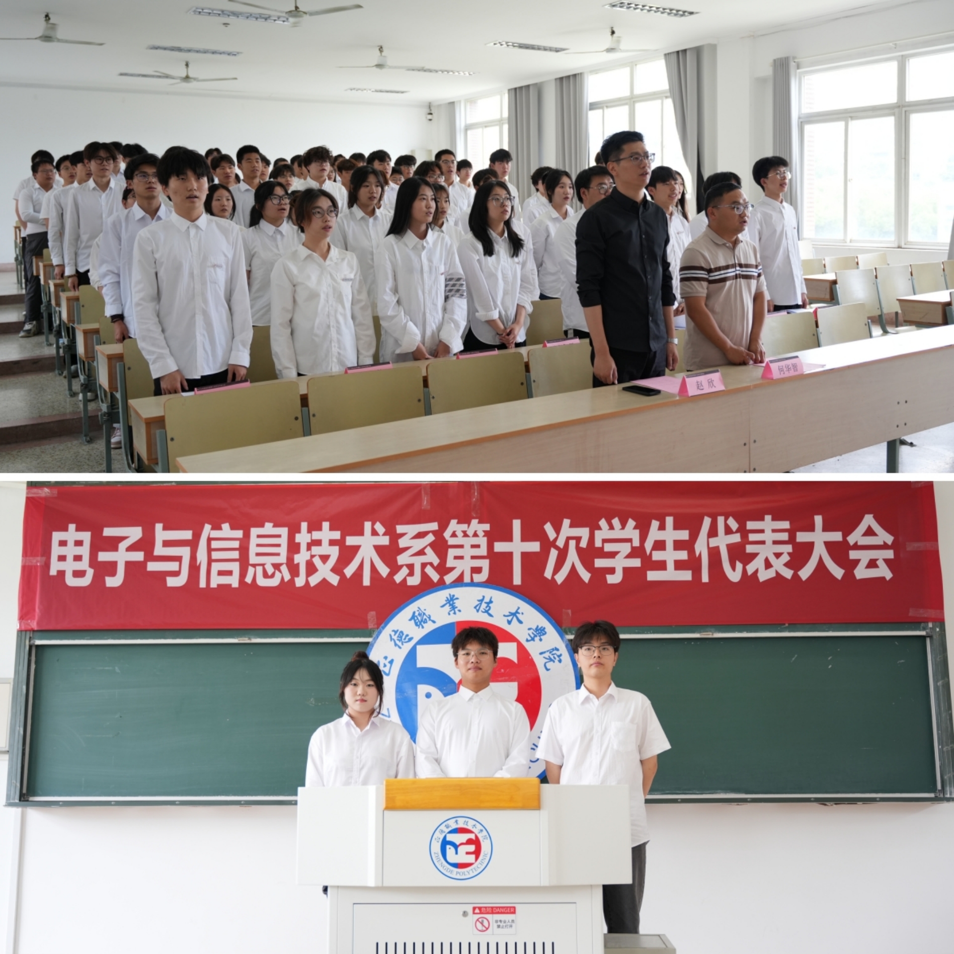 2024年6月6日,电子与信息技术系学生会在1302教室召开电子与信息技术系第十次学生代表大会。电子与信息技术系党支部书记赵欣、团总支书记何华智出席会议并讲话。
