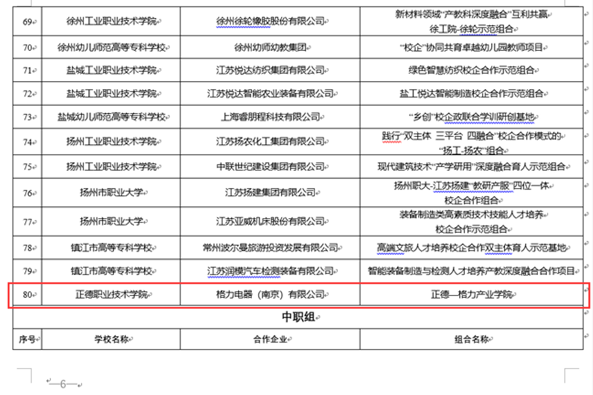 近日,省教育厅正式发布了2022年江苏省职业教育校企合作示范组合培育项目评审结果,根据《省教育厅关于开展2022年江苏省职业教育校企合作示范组合培育工作的通知》(苏教职函〔2022〕27号)要求,av在线 与格力电器(南京)有限公司合作的“正德—格力产业学院”成功获批。