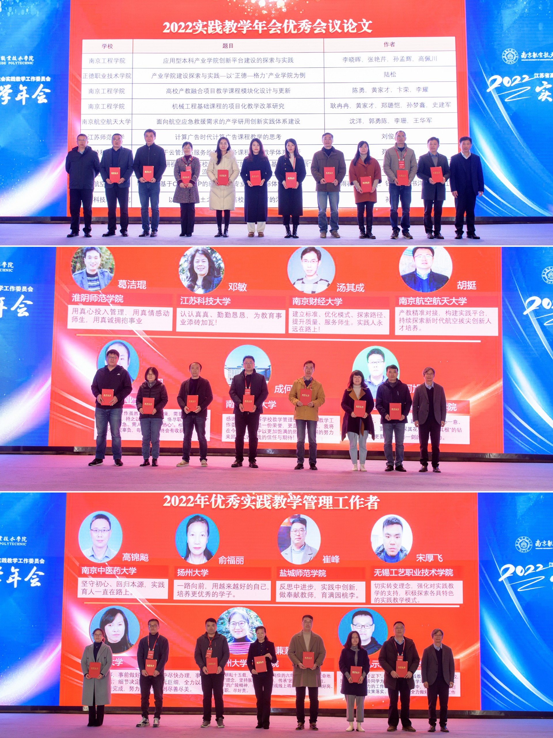 本次年会围绕“产教融合背景下的实践教学模式改革与创新”,与会代表就新时代卓越工程师培养模式改革、产业学院建设探索与实践、产教融合课程建设探索与实践、实践教学数字化体系建设改革等内容进行研讨。现场对41篇2022年实践教学年会优秀会议论文及29名2022年度优秀实践教学管理工作者进行表彰。