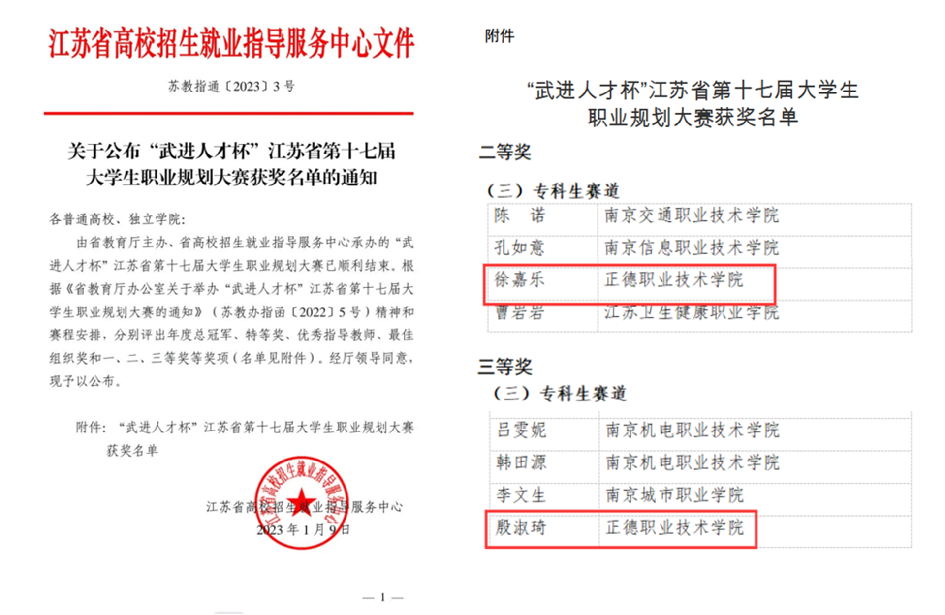 江苏省大学生职业生涯规划大赛,旨在全面普及大学生职业规划知识,传播生涯成长理念,提高大学生的创新能力、实践能力和就业创业能力。自2022年4月大赛启动以来,在院领导和学生处的全力支持下,各系积极配合,指导老师傅蕴男认真做好各项备赛工作,通过线上线下结合的方式反复指导打磨参赛选手的作品,最终在省内同类院校中名列前茅。