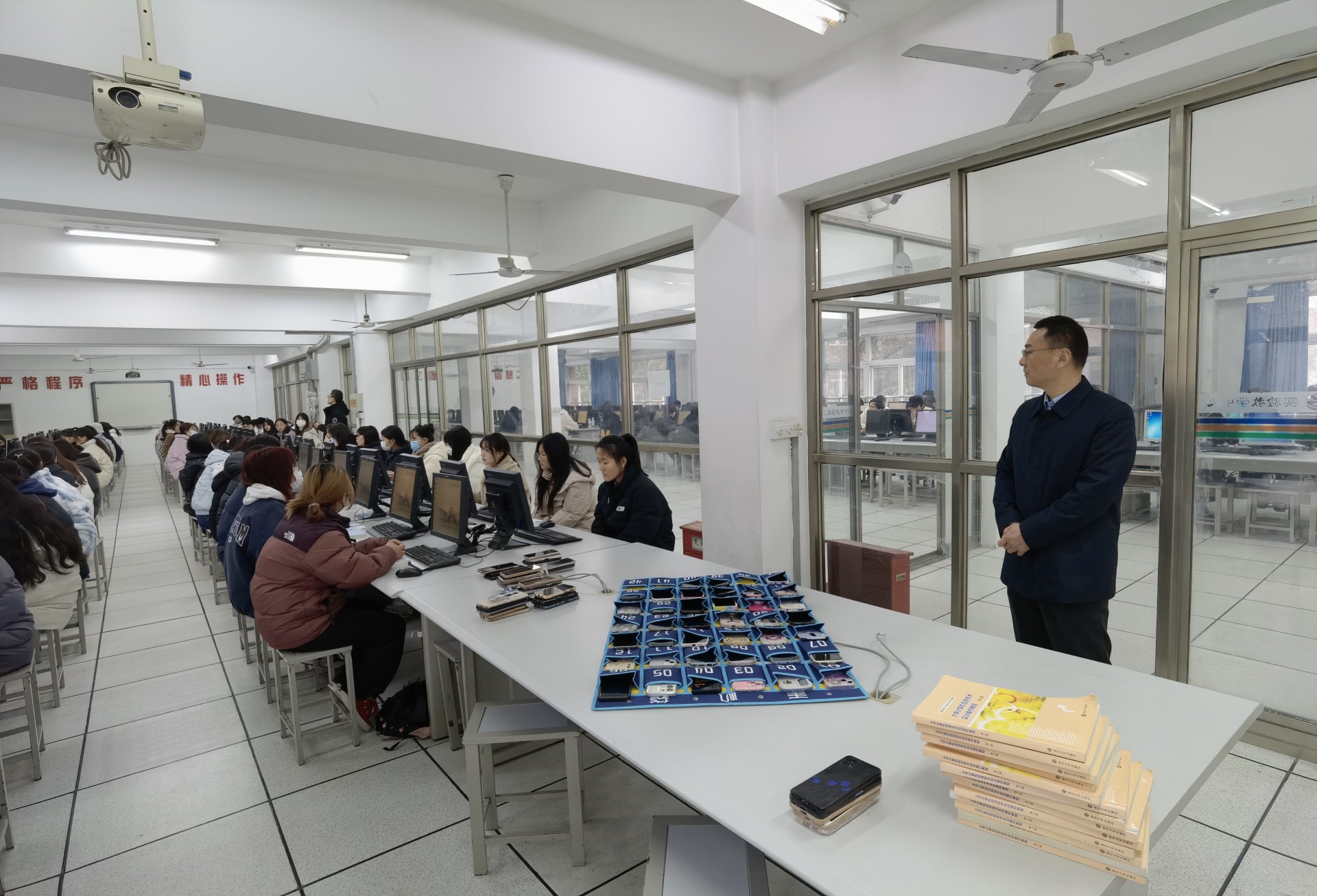 2月13日是av在线 新学期开学上课第一天,院长庄群华、党委书记孙雷深入教学一线,检查指导教学工作。