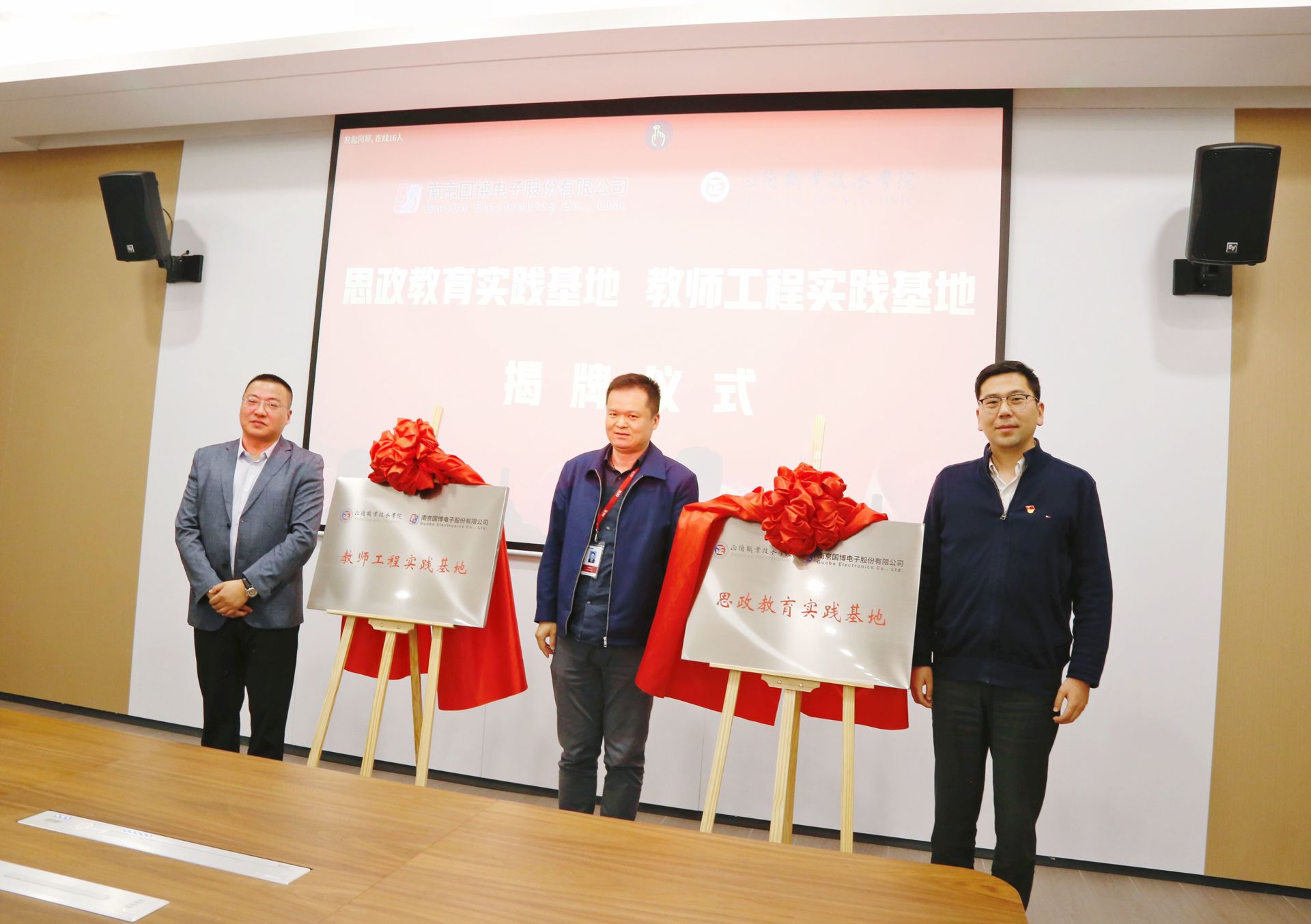 祖国、陆松、王家波为思政教育实践基地、教师工程实践基地揭牌。