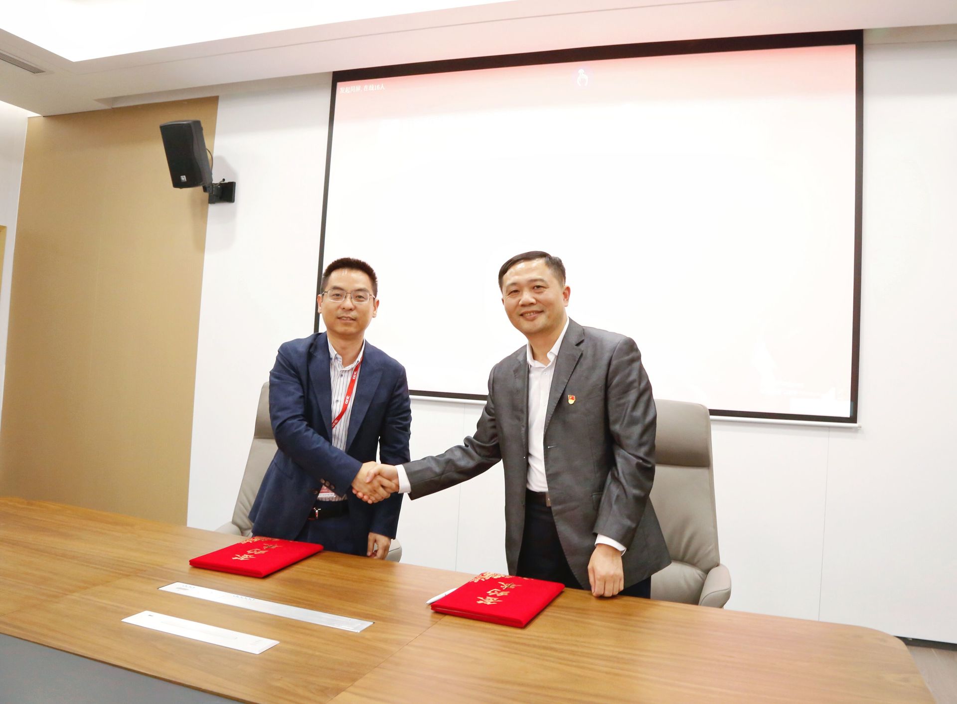 会上江爱华、周骏签订共建“国大”现场工程师学院协议。