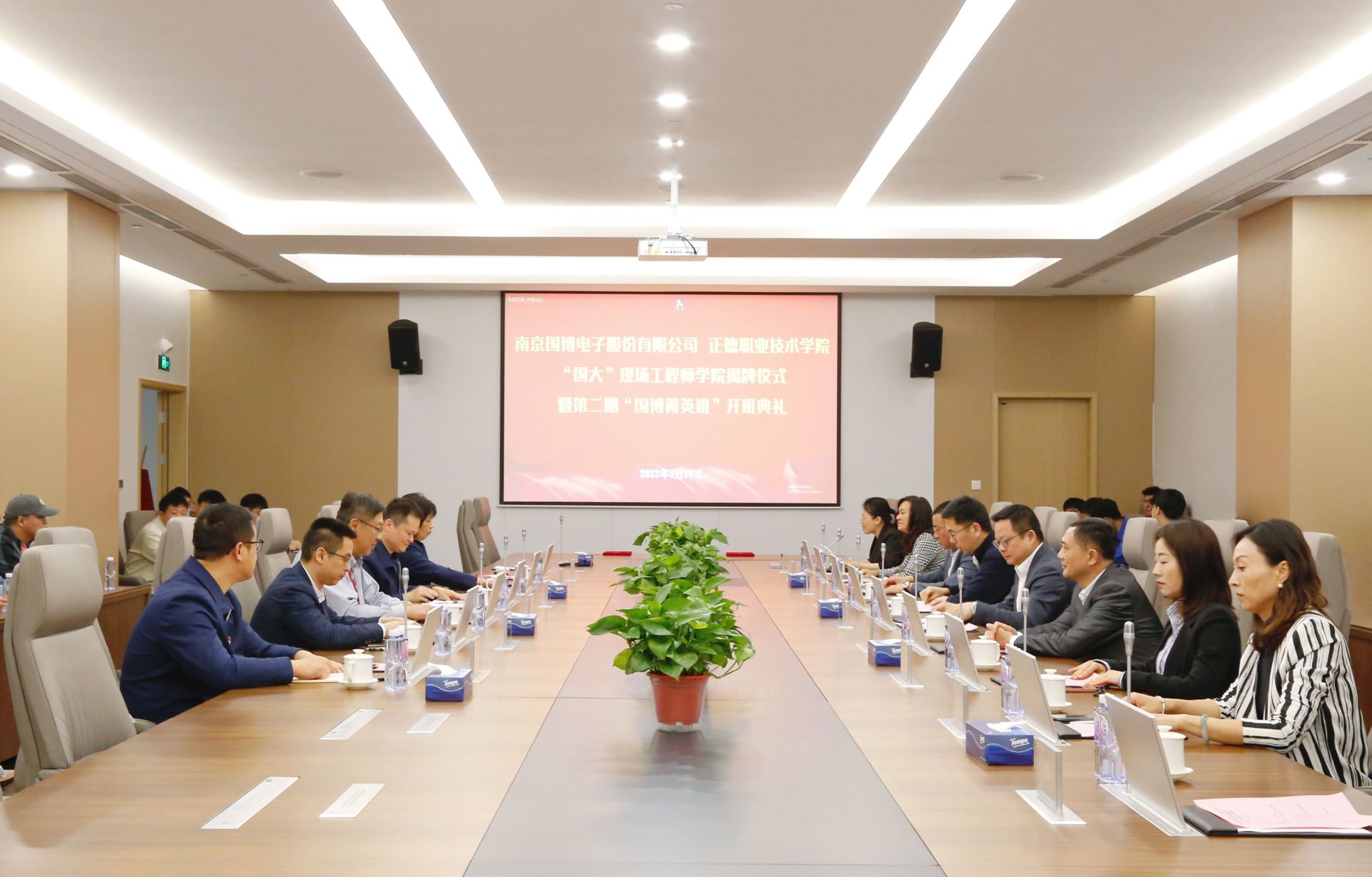 5月10日,“国大”现场工程师学院揭牌仪式暨第二期“国博菁英班”开班典礼在南京国博电子股份有限公司隆重举行,南京国博电子股份有限公司党委副书记、常务副总经理杨磊,副总经理周骏,人力资源部总经理王家波,学院党委书记、政府督导专员孙雷,副院长江爱华及相关单位负责人、第二期“国博菁英班”48名学员等参加了会议。