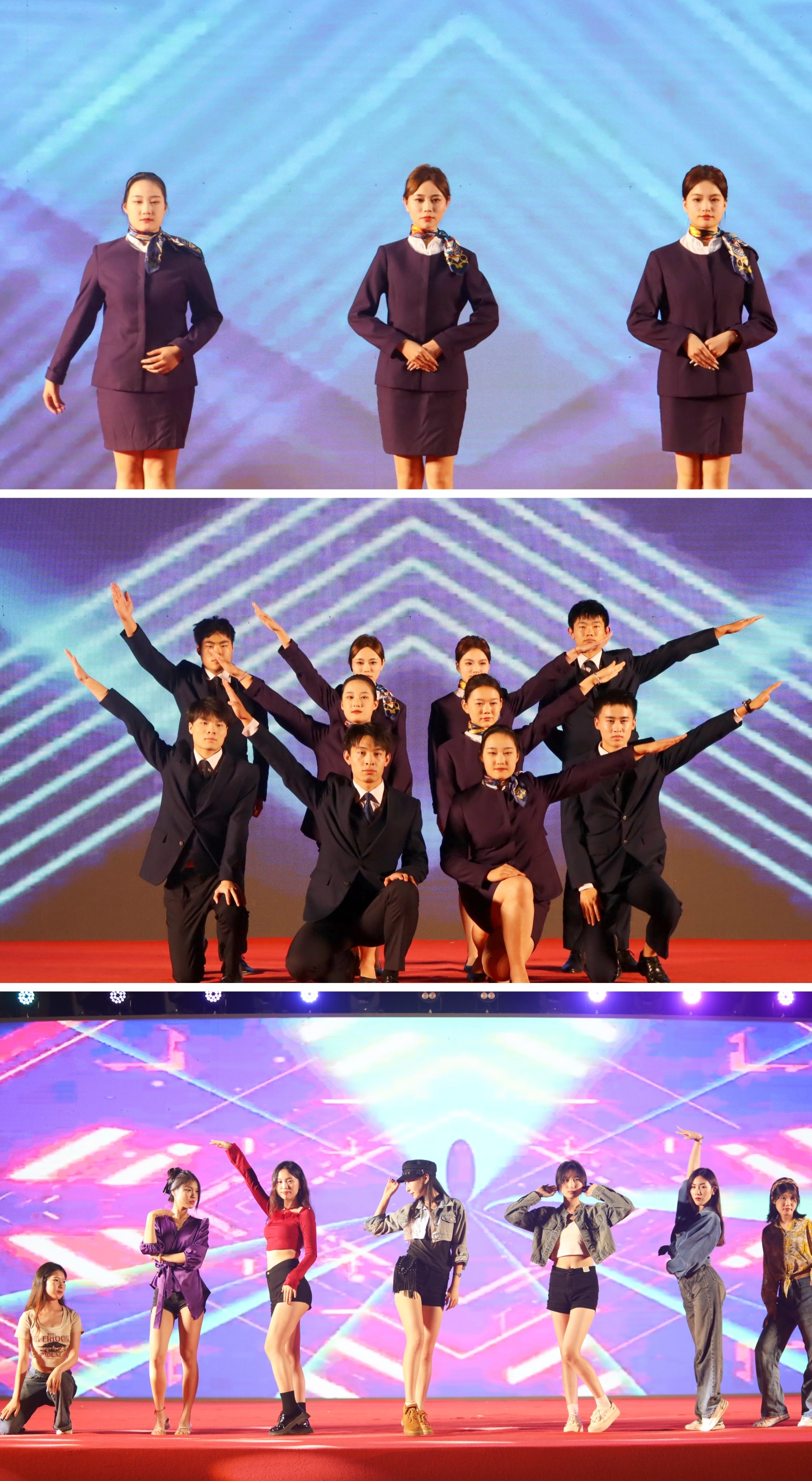 晚会在正舞堂的舞蹈《lightning》中拉开序幕,闪耀的灯光伴随着音符而舞动,整个晚会的热情被全部点燃。紧接着,一首《爱的回归线》将大家的心连在一起,让心灵在音符中得到宁静;舞蹈《卿卿日常》是少女们充满青春魅力的舞动,婉转温柔的舞步迎风而起,裙衣随风摇摆,宛如画卷般唯美;朗诵《书写青春华章》歌颂少年们肩负青春的使命,用奋斗书写铿锵的篇章,用诗歌点亮青春,闪耀出独特的光芒;《华夏龙》是教官们带来的精彩表演,金色的龙狮翻腾起舞,赢得现场阵阵掌声,《青春年代》是2022级空乘专业学长学姐们带来的优雅礼仪秀,举手投足间尽显职业范,令人过目不忘。