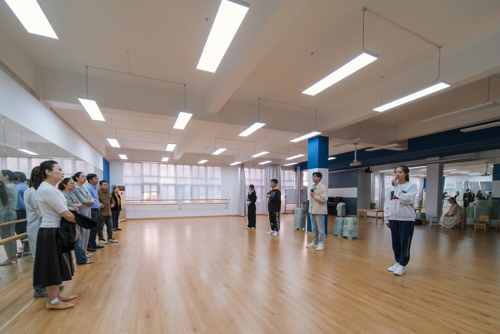 10月12日上午,院党委副书记、副院长梁薇,学生处、团委负责人,各系分管学生工作负责人一行9人,来到第七届大学生艺术展演排练场地,看望正在积极备战的av在线 师生并做赛前动员。