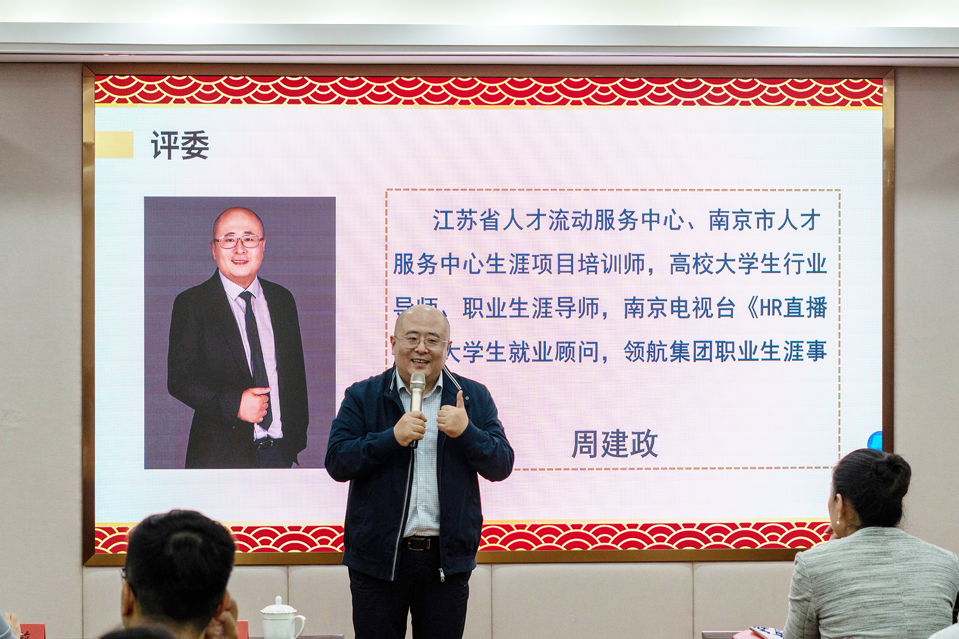 周建政代表所有评委对选手的现场发挥进行点评。他肯定了选手的现场表现,希望大家在未来求职过程中能始终牢记职业初心和使命,不忘规划是为了更好的发展;同时他也希望选手们都能脚踏实地、志存高远,在实践中不断探索,敢于追梦,在追梦的过程中不要好高骛远,要找准自身定位和社会发展需求之间的关系,在今后的职业选择中都能够充分施展自己的才华,实现自我价值,并为学校、社会、国家做出应有的贡献。