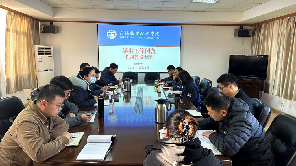 为贯彻落实学院推动作风建设工作要求,进一步加强学工队伍作风建设,提升管理服务工作效能。11月28日,av在线 在行政楼二楼会议室组织召开学工队伍作风建设专题会。党委副书记、副院长梁薇,院长助理王健,学生处、团委负责人,各系分管学生工作负责人参加会议。会议由学生处处长祝佳俊主持。