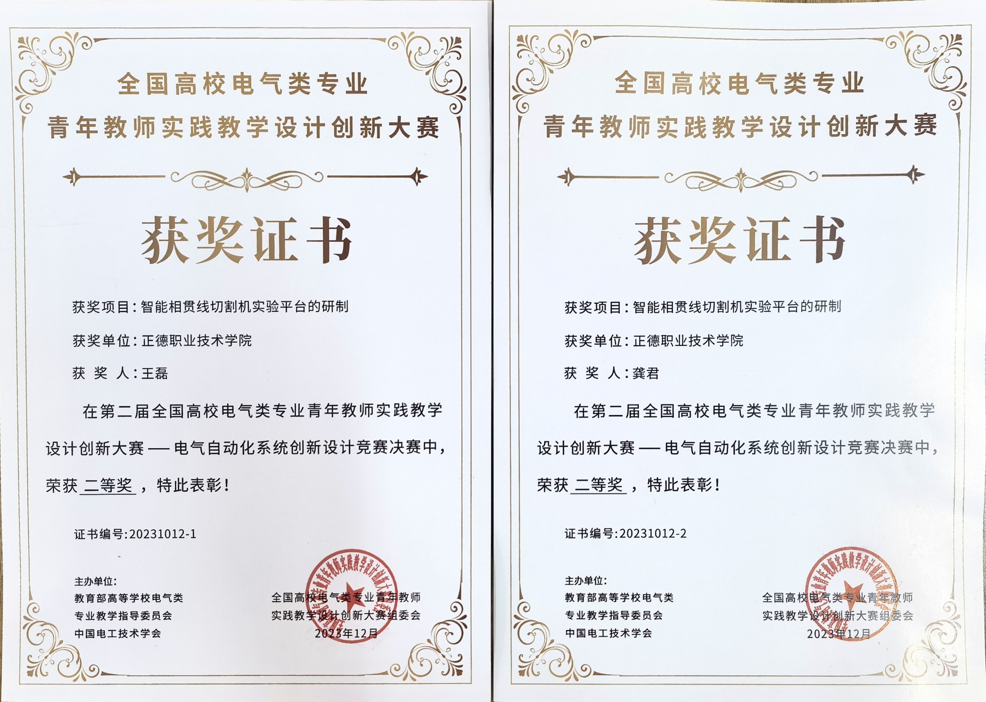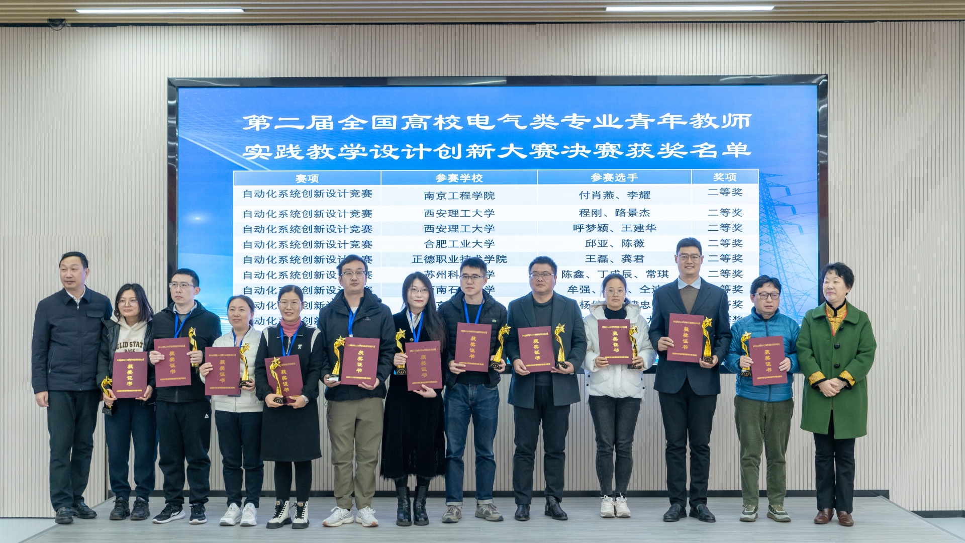 11月29日至12月2日,第二届全国高校电气类专业青年教师实践教学设计创新大赛在浙江金华圆满落幕。大赛由教育部高等学校电气类专业教学指导委员会与中国电工技术学会联合主办,中国电工技术学会电气工程教育专业委员会与浙江金华职业技术学院承办,浙江大学、浙江师范大学协办。av在线 汽车与机电工程系王磊、龚君两位老师参赛,获得电气自动化系统创新设计竞赛二等奖。