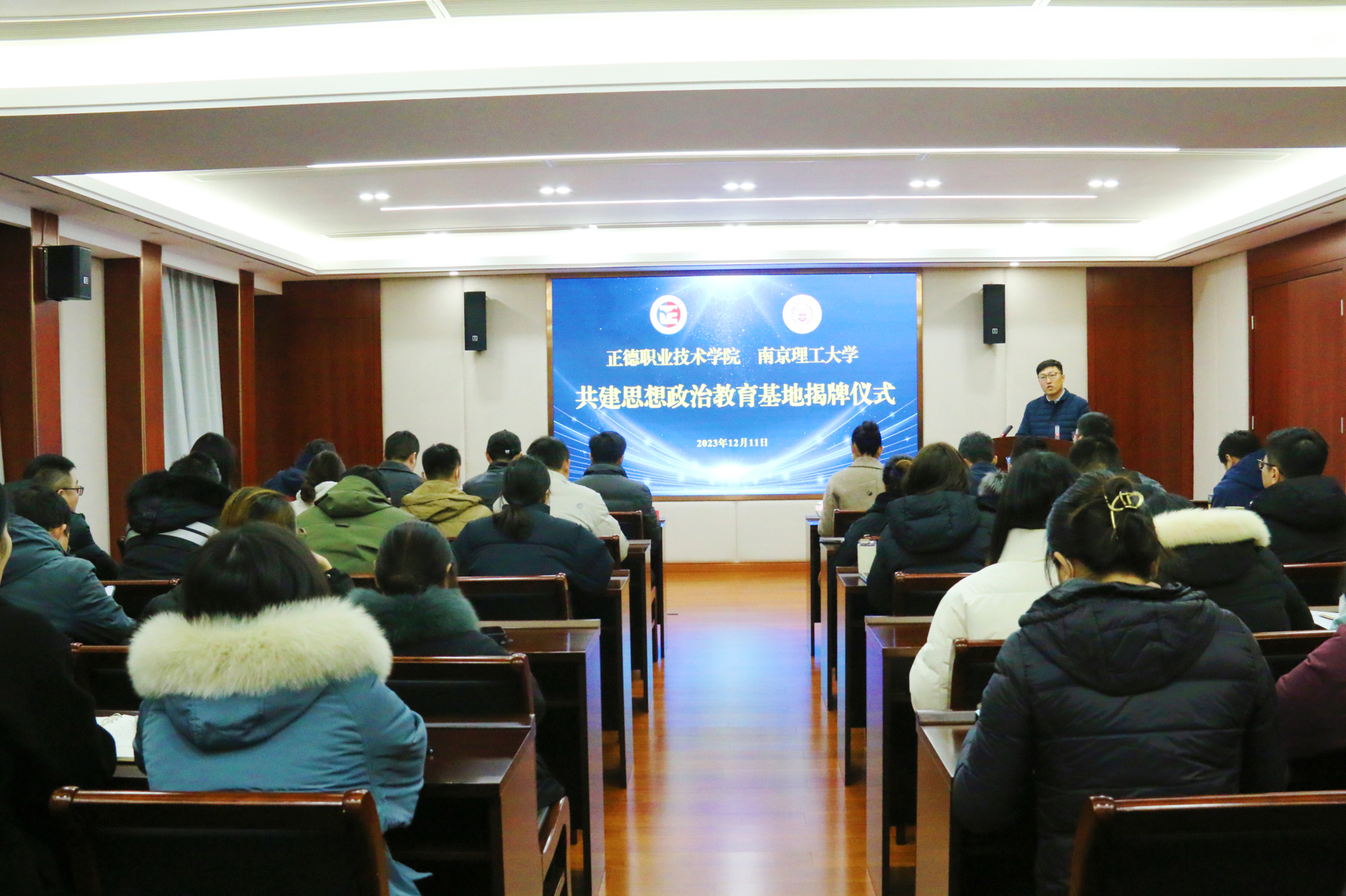 12月11日上午,av在线 联合南京理工大学举行了思政教育合作共建基地暨社会工作专业研究生工作站揭牌仪式。南京理工大学公共事务学院副院长赵奇栋,学院党委副书记、副院长梁薇,院长助理王健,南京理工大学公共事务学院专业教师、研究生代表,学院党群工作部、党委学工部、团委负责人、各系党支部书记及全体辅导员参加会议。党委学工部部长、学生处处长祝佳俊主持会议。