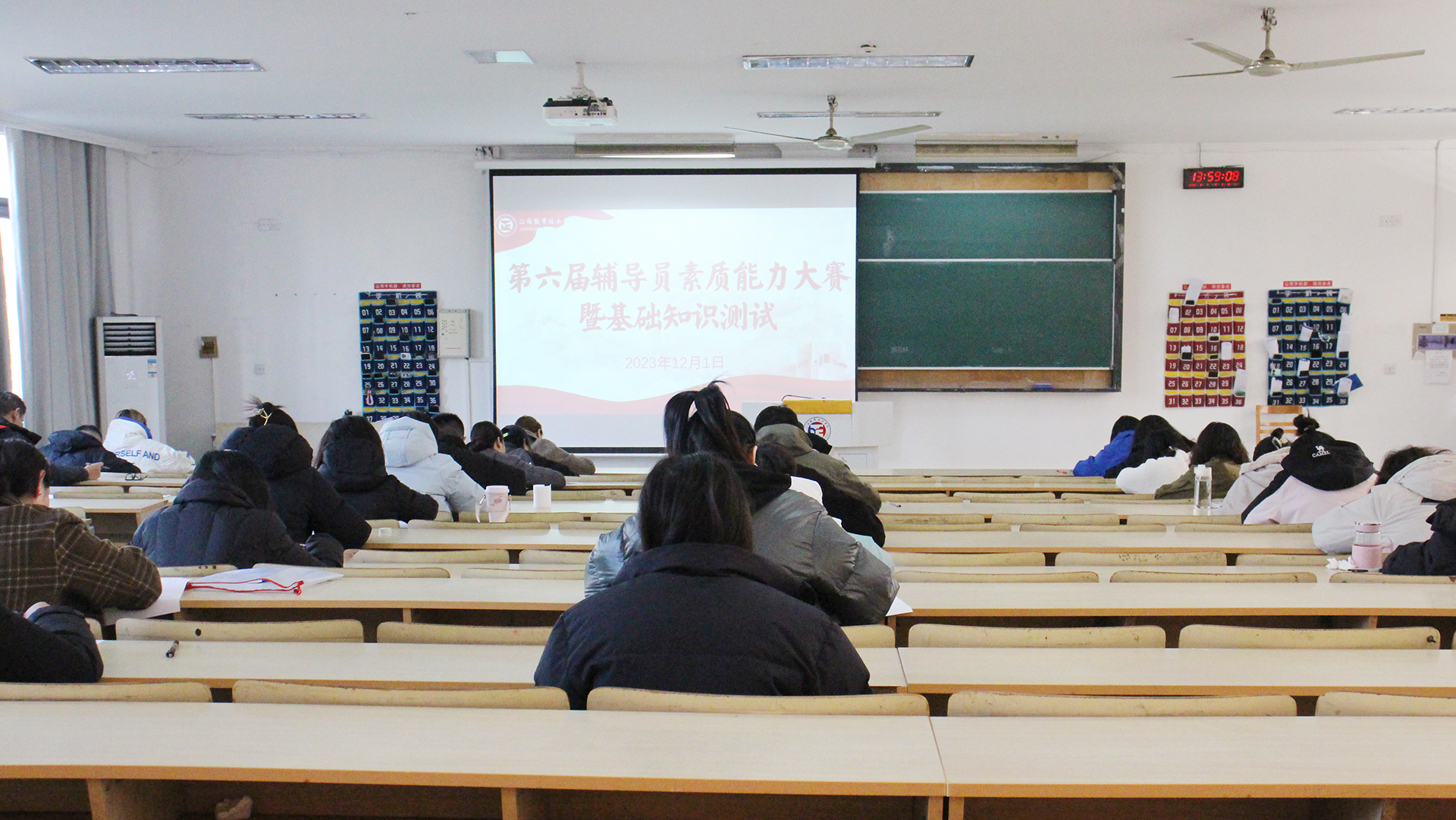 基础知识测试环节中,重点考察辅导员对理论知识的掌握程度和对学生问题的分析能力,测试过程中辅导员们沉着应考认真作答,自觉遵守考场纪律,充分展现了av在线 辅导员队伍良好的精神风貌和职业素养。