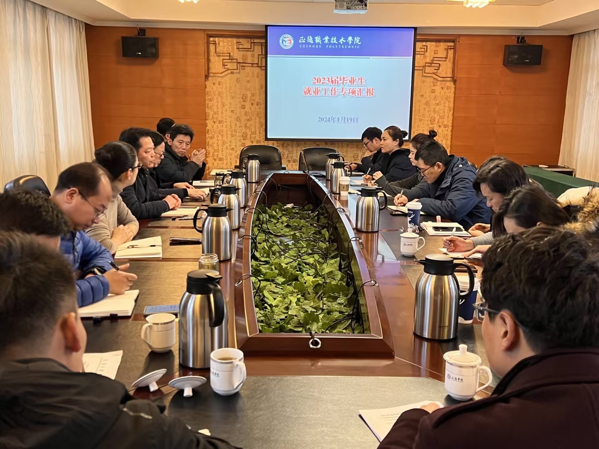会上,学生处处长祝佳俊汇报了学院2023年就业工作开展情况,详细解读了2023届毕业生就业核心数据,分析了就业工作经验与不足,提出了推进学院就业工作的对策。各系主要负责人结合本系实际,分享交流了促进高质量就业的思考与举措。