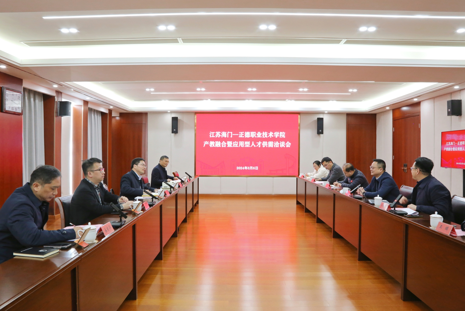 洽谈会上,孙雷首先代表学院对薛治安一行的到来表示热烈欢迎,并一同观看正德宣传片。他希望能够积极搭建政校企合作平台,深化政校企产学研融合,合力推进应用型人才供需合作,实现互利共赢。赵凯雷对学院近年来取得的办学成效以及产教融合人才培养的相关工作进行介绍。王墀对学院学生实习及就业情况进行介绍。