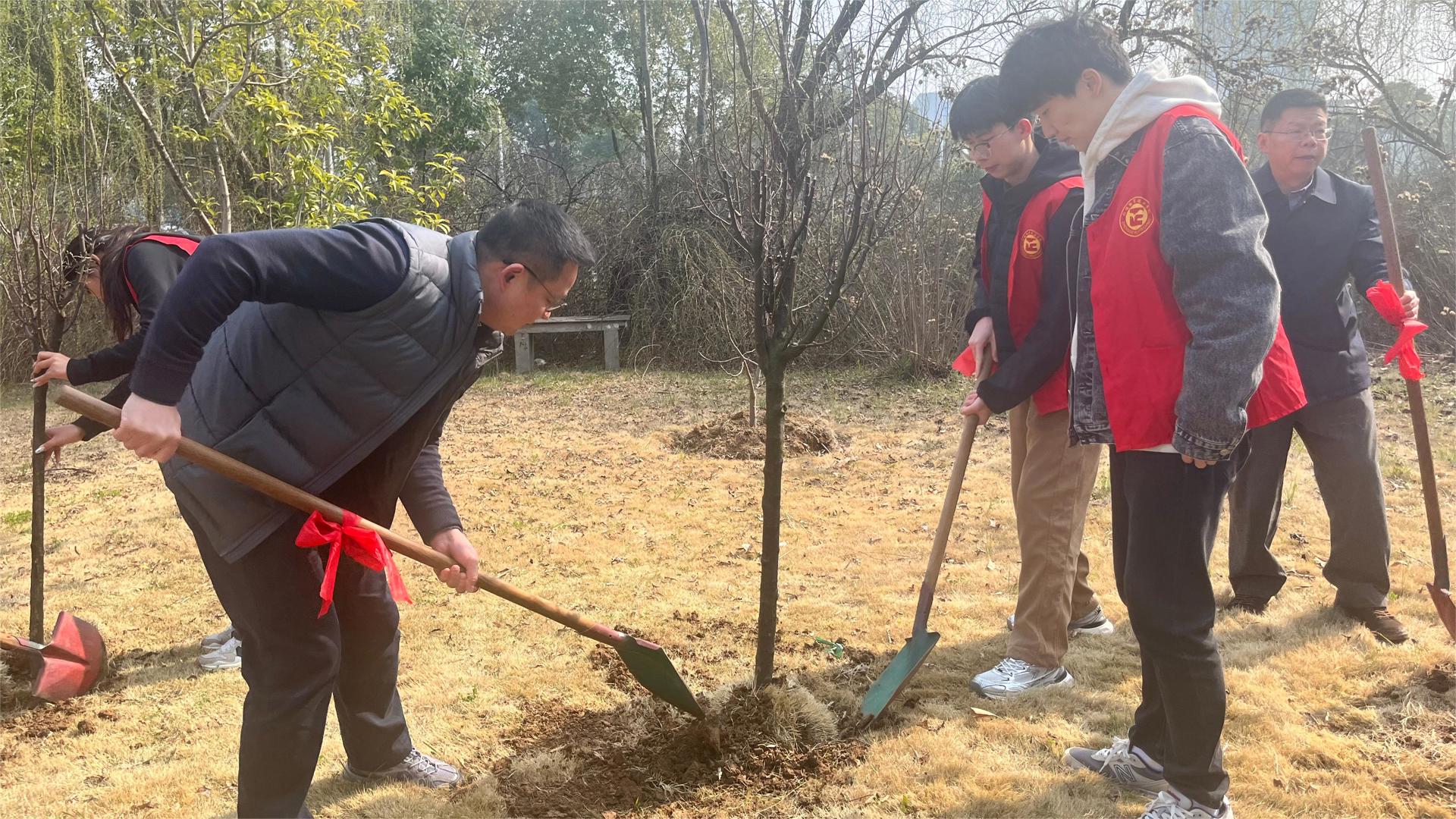 春回大地万物苏,植树添绿正当时。2024年3月12日是我国第46个植树节,为深入学习习近平生态文明思想,引导学生牢固树立和践行“绿水青山就是金山银山”的理念,植树节当天上午组织av在线 师生开展“春‘锋’十里,‘植’此青绿”的植树活动。