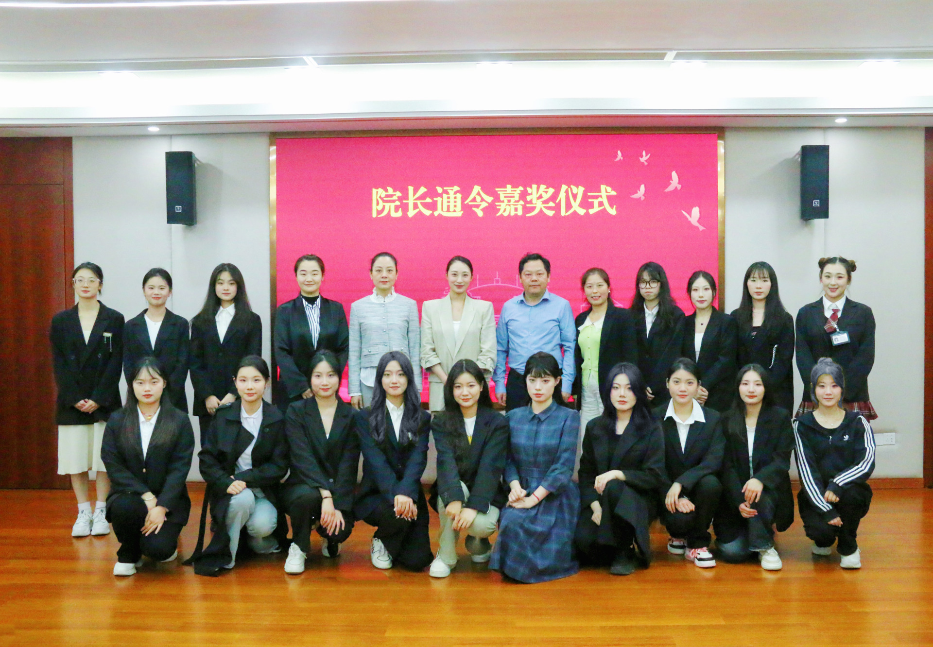 仪式开始前,大家通过视频一起回顾了《天梦》舞蹈团队的比赛精彩瞬间。随后,梁薇宣读了院长通令嘉奖第22号表彰决定。孙永荣为《天梦》团队成员颁发嘉奖令。