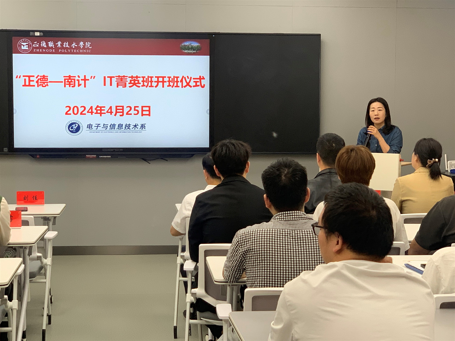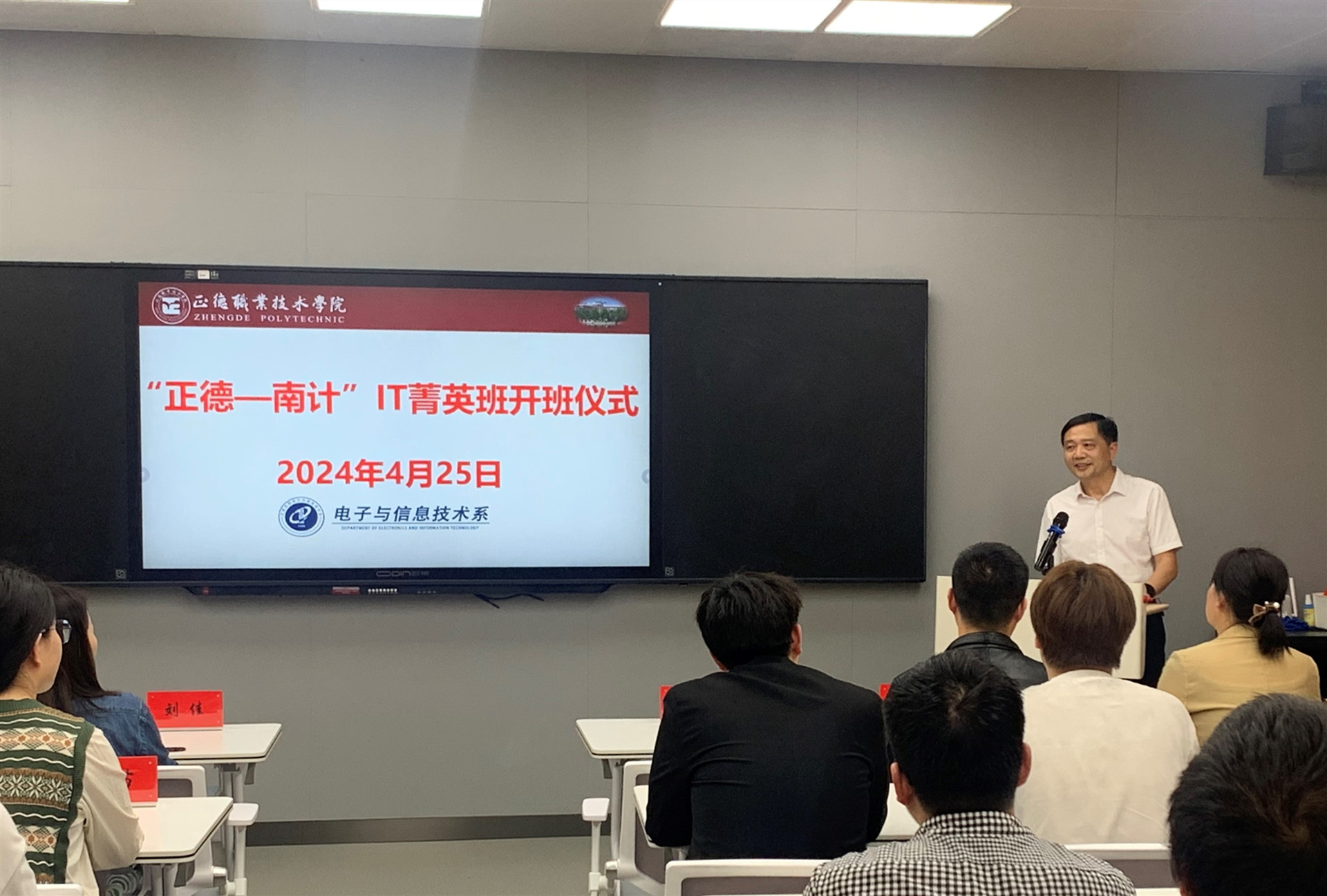 2024年4月25日下午,电子与信息技术系在教学楼9106成功举办“正德-南计”IT菁英班开班仪式,标志着校企合作办学迈向了一个新的台阶,为同学们提供了更广阔的职业发展空间和更优质的教育资源。