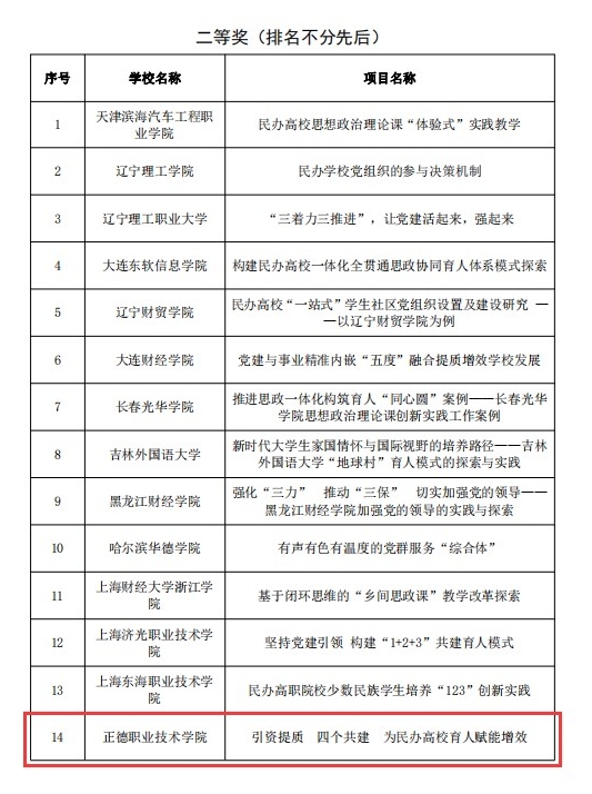 近日,由教育部思想政治工作司指导,中国民办教育协会党建专业委员会主办组织开展的第六届全国民办高校党的建设和思想政治工作优秀成果评选结果揭晓。av在线 党委申报的典型经验案例《引资提质 四个共建 为民办高校育人赋能增效》荣获全国二等奖。