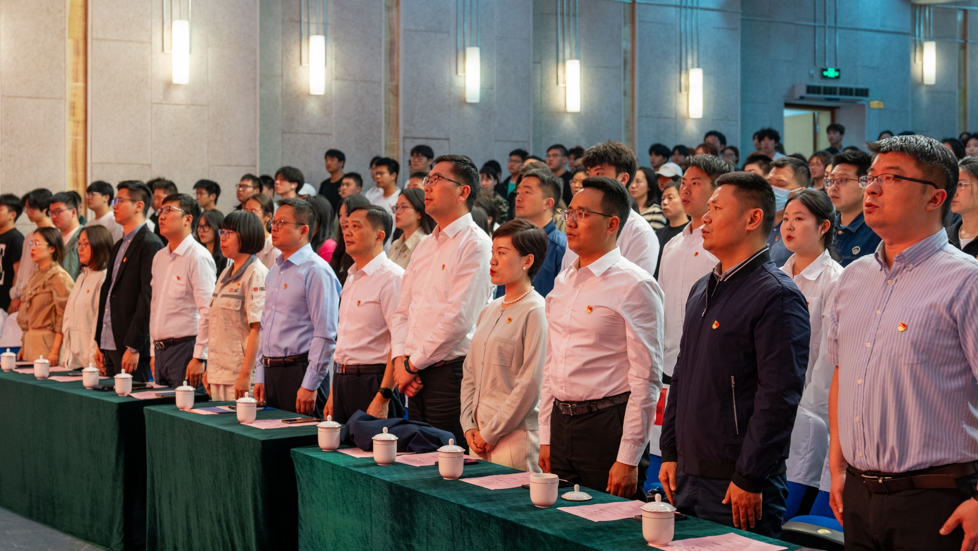 活动在嘹亮的国歌、团歌中拉开帷幕,本次“五四”表彰暨大国工匠思政公开课由“青春之信仰 · 逐梦新时代”、“青春之奋斗 · 扬帆新征程”、“青春之作为 · 扛起新使命”三个篇章组成,融合了朗诵、舞蹈、小合唱等多种艺术表演形式,带领师生沉浸式追忆峥嵘岁月,体验别开生面的学习教育,感悟信仰的力量。