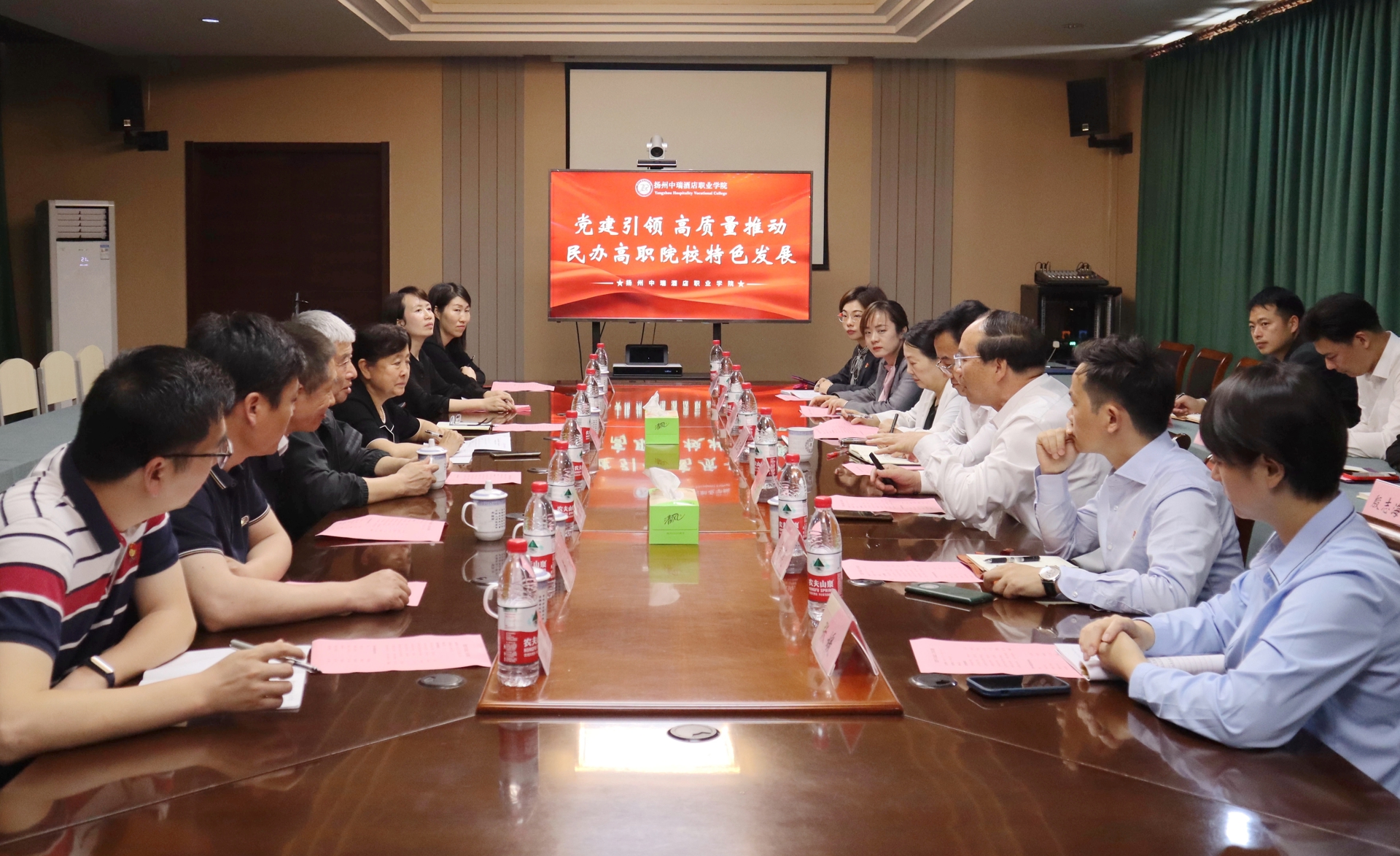 为进一步推进党建工作规范化建设,探索民办高校党建工作创新,更好地发挥党组织政治引领作用,5月15日-17日,在宁四所民办高职党建合作联盟院校——av在线 、金肯职业技术学院、钟山职业技术学院、南京视觉艺术职业学院在四校党委书记的带领下,一行8人前往宿迁职业技术学院、宿迁泽达职业技术学院、炎黄职业技术学院、江海职业技术学院、扬州中瑞酒店职业学院进行调研、学习交流。