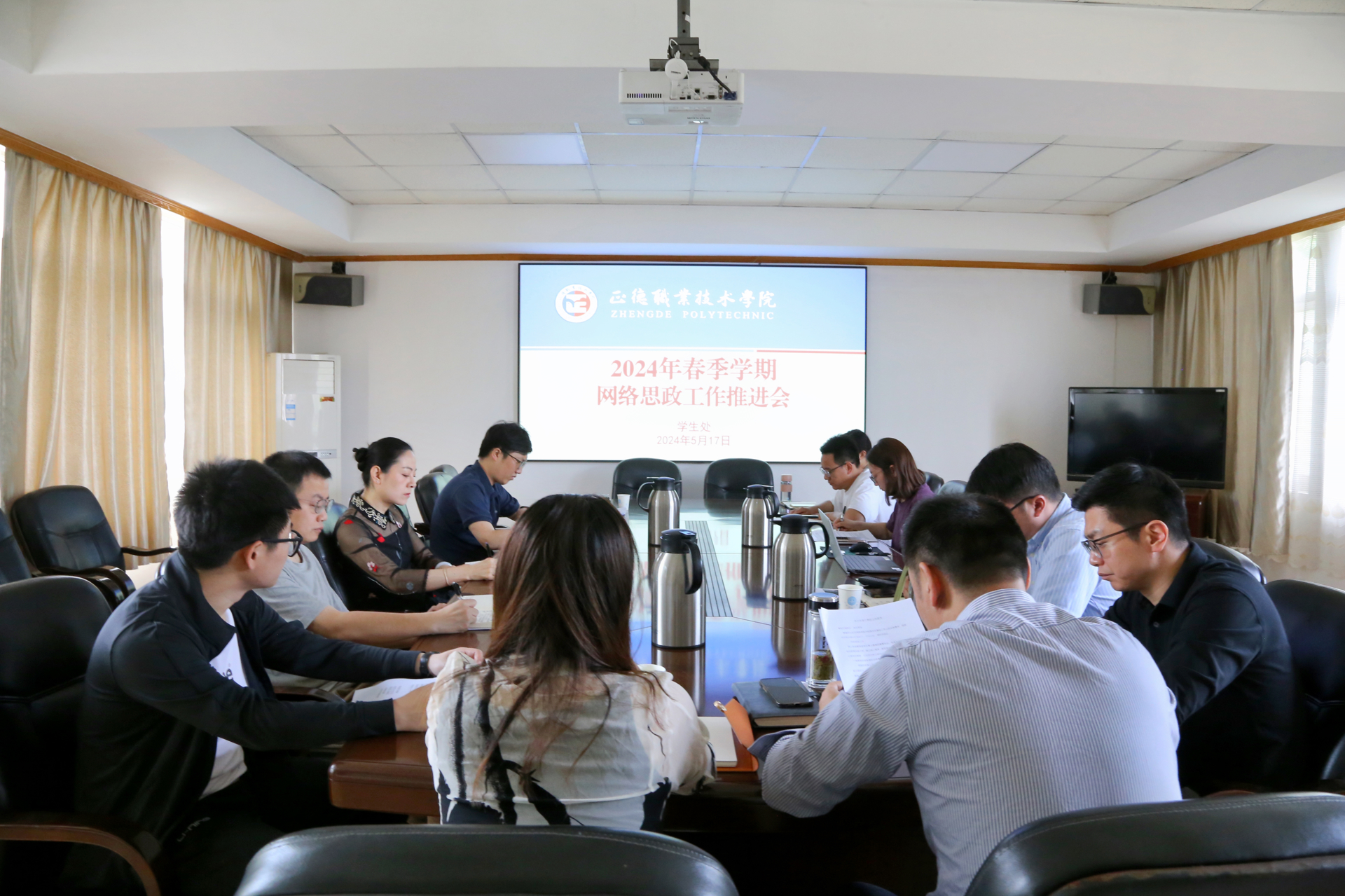 为积极探索网络育人新方法、新路径,着力增强网络思想政治教育的引导力、传播力、亲和力,不断提高网络思政育人实效。5月17日上午,av在线 在行政楼二楼会议室组织召开2024年春季学期网络思政工作推进会。院党委副书记、副院长梁薇,党群工作部、学生处、团委负责人,各系分管学生工作负责人参加会议。会议由学生处处长祝佳俊主持。