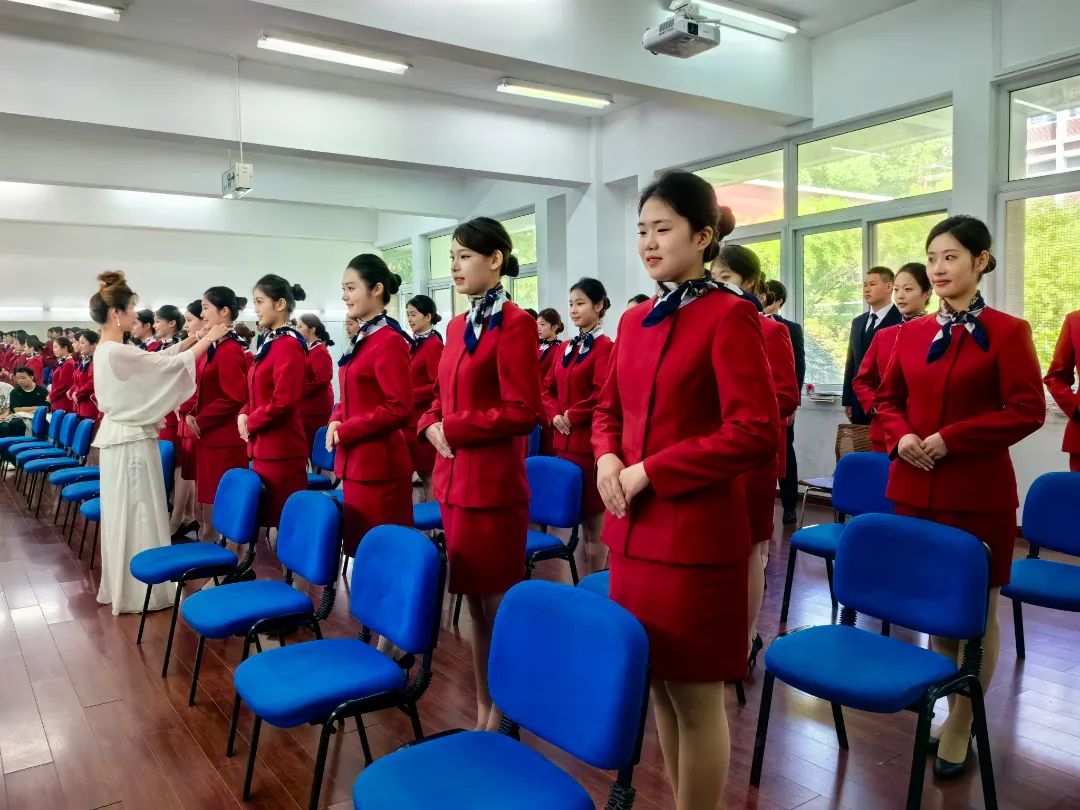 民用航空系酒店管理与数字化运营专业展示了“燕矶夕照”为主题的酒店餐饮摆台,严谨的业务能力和主题的诗意氛围相融合;空中乘务专业学生进行了民航礼仪服务展示,整齐划一的标准规范动作诠释了优雅与专业,两场展示生动体现出了专业与职业的完美结合,展现了学生在学习中形成的良好的职业素养。在分享会上学生代表孙俊涛介绍了自己在禄口机场实习期间工作内容并结合具体案例,分享了自己遇到的挑战和收获鼓励同学们将所学应用于实践,为自己的未来铺就坚实的基石。
