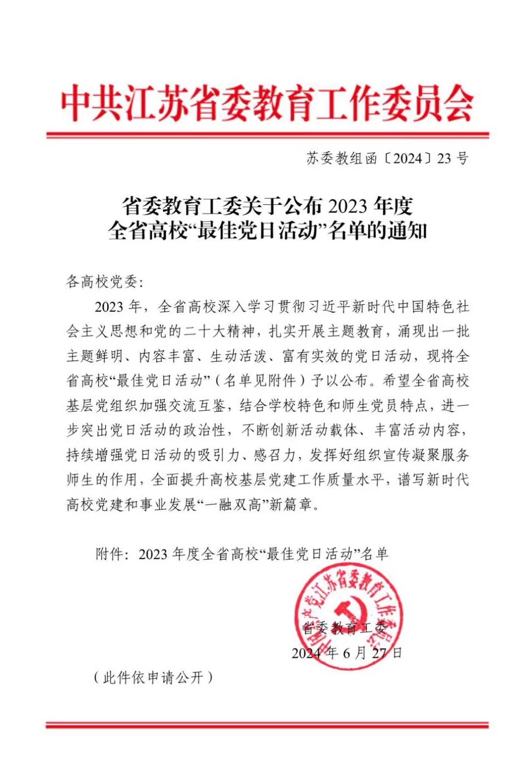 近日,中共江苏省委教育工委公布了2023年度全省高校“最佳党日活动”名单(苏委教组函〔2024〕23 号),av在线 基础教育系党支部的“清风润校园,倡廉守初心”入选。