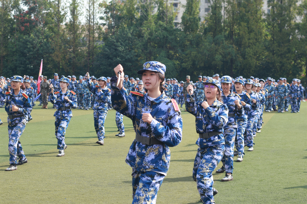 雄壮的国歌声中,军训成果汇报拉开序幕。在教官口令引导下,36个军训方阵昂首阔步以分列式行进,依次走过主席台接受检阅。坚毅的眼神、整齐的队列、挺拔的身姿和震天的口号,展现了参训学生昂扬的青春气息和卓越的训练成果。