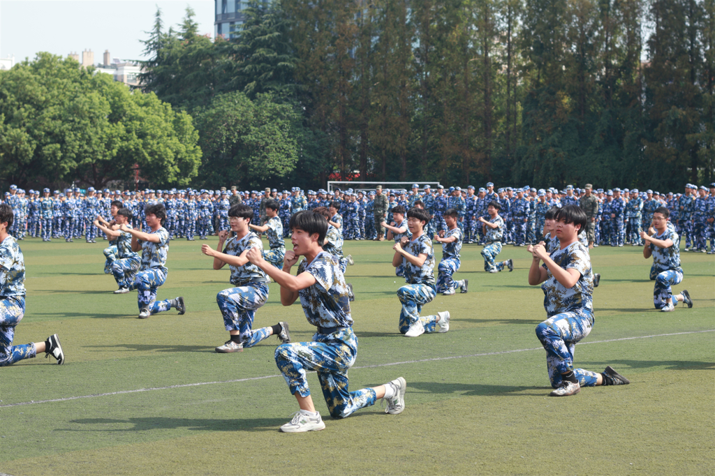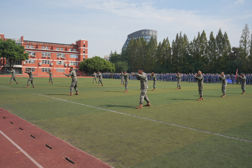 在男子军体拳、女子匕首操科目展示中,同学们快狠准稳、训练有素、行云流水、气贯长虹。