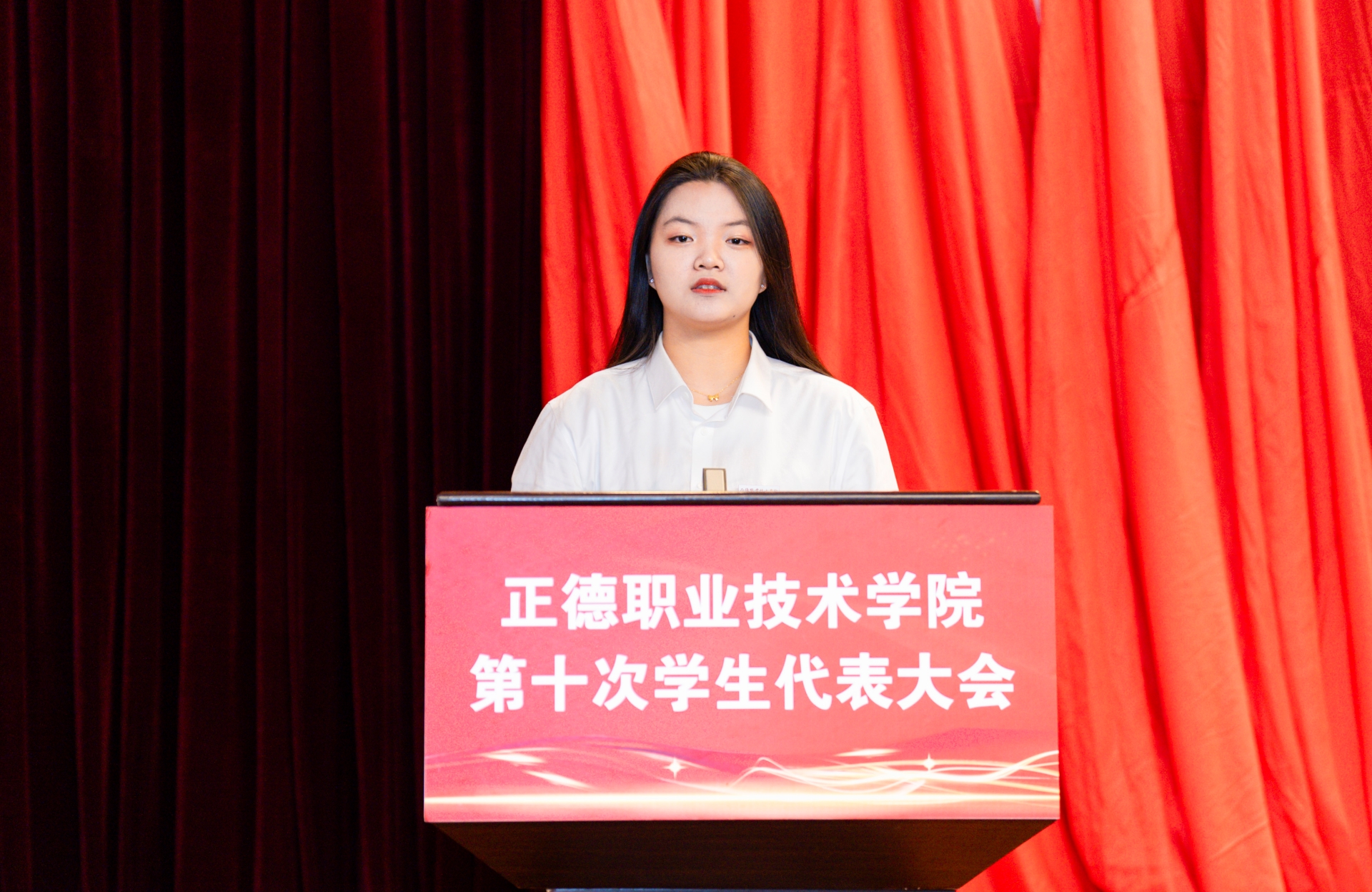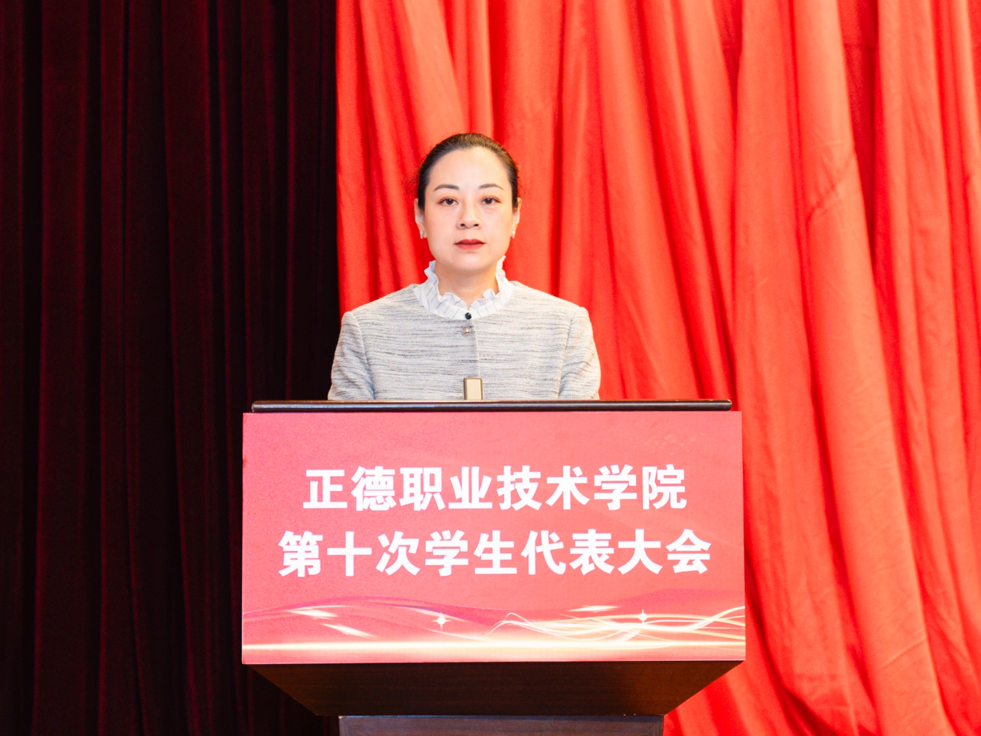 梁薇代表学院党委对本次学代会的召开表示祝贺,向长期以来关心支持av在线 学生会工作的省学联、兄弟院校表示感谢。她表示,在过去的一年里,av在线 学生会在院党委和省学联的正确领导下,在院团委的具体指导下,团结带领正德学子积极响应全国学联改革号召,坚持依法依章开展工作,在思想政治引领、校风学风建设、服务学生成长等方面展现了积极作为。同时提出三点希望:一是希望全院广大学生要怀抱梦想,脚踏实地,以奋进书写青春答卷。让视野宽广怀大局、脚踏实地担大任、自信自强勇作为成为正德学子的亮丽名片;二是希望全院各级学生干部要敢想敢为,善作善成,以担当践行青年使命。让锐意进取促发展、守正创新善作为、挺膺担当作贡献成为正德学生骨干的主流群像;三是希望全院各级学生组织要求真务实,胸怀大局,以热情服务青年同学。让“遇到困难想得起、需要之时找得到、关键时刻靠得住”成为正德学生组织的直观印象。