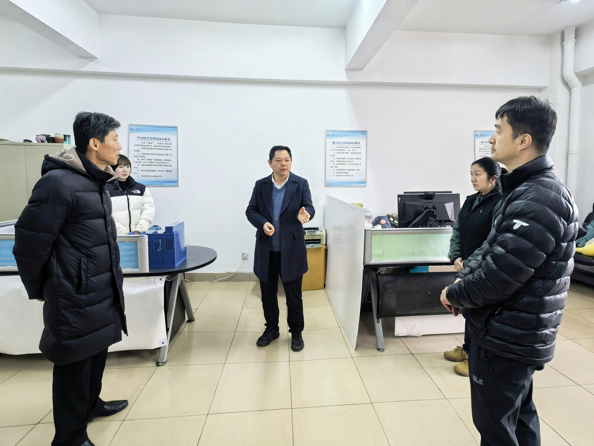 院领导来到教学楼,与即将开启春季学期第一堂课的教师代表进行了亲切交流,详细询问大家在春节期间的生活工作情况,仔细了解了教学准备和备赛进展,认真倾听老师们对教学工作和学院发展的想法和建议。院领导勉励大家要弘扬教育家精神,坚守教育初心,勇担育人使命,以更加饱满的热情和更加扎实的专业技能,为学院高质量发展贡献力量。