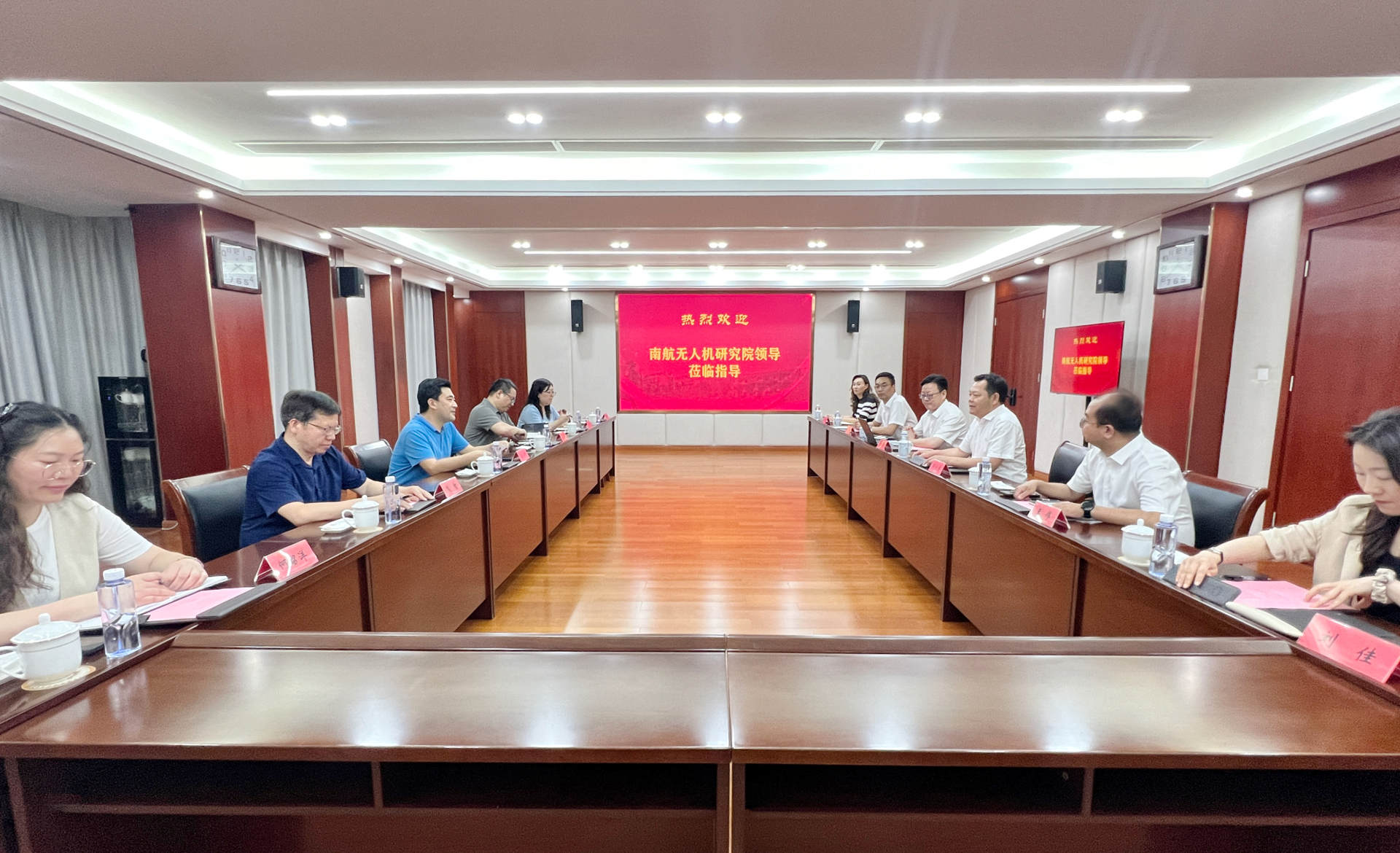 6月6日下午,南京航空航天大学无人机研究院(简称南航无人机研究院)党委书记高小泽、党委副书记、副院长杨波、院长助理熊智、学科科研/教学办主任刘蓉、南京长空科技有限公司飞行服务中心部部长何留洋一行来av在线 调研交流。av在线 院长孙永荣、副院长赵凯雷、院长助理兼党政办公室主任王伟、院长助理兼招生就业处处长王墀以及相关系负责人参加调研。