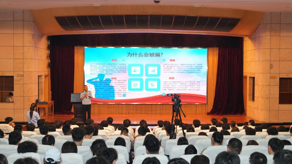 江宁公安分局开发区派出所四级高级警长娄军来,凭借丰富的基层工作经验,聚焦当前学生群体中高发、易发的常见电信网络诈骗类型进行了深入浅出的剖析。为确保反诈宣传无死角、全覆盖,开发区派出所面向av在线 3500余名新生,精心组织民警及反诈领导小组成员,主动走进学生宿舍、深入课堂教室、来到训练操场,零距离指导同学们如何识别诈骗陷阱、保护个人信息,并一再强调“不轻信、不转账、不透露”的核心原则,鼓励大家积极下载并使用国家反诈中心APP,遇有可疑情况第一时间报警求助。