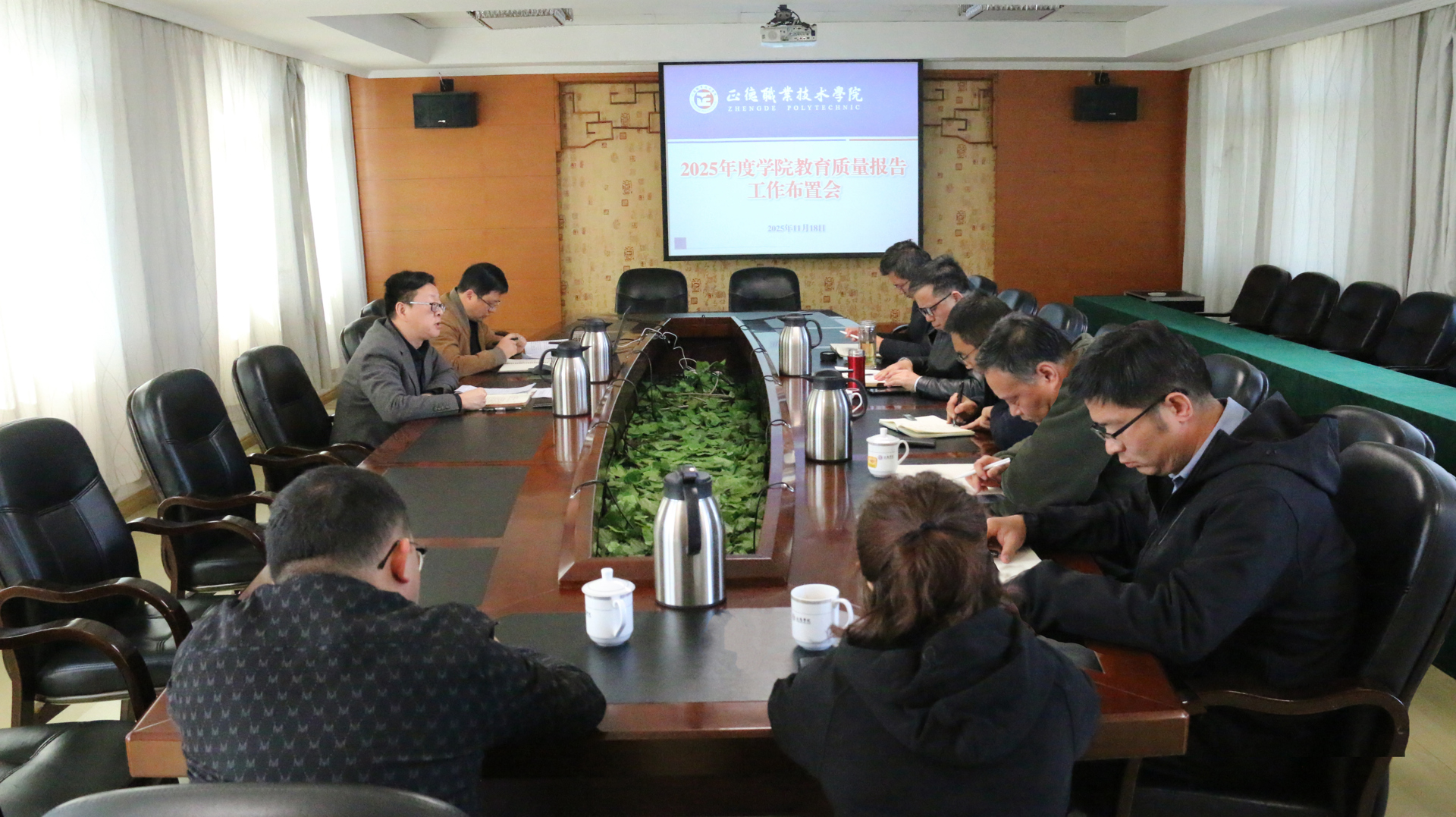 赵凯雷表示,质量年报编制事关学院办学质量呈现、内涵建设提升,是职业教育质量评价的重要载体,也是学院展示办学成效、接受社会监督的关键平台。他要求,一是要高度重视,严把数据关。报告中的数据必须以人才培养状态数据平台为依据,相关统计务必严谨细致、准确无误,为办学评估筑牢前期基础。二是要统筹协调,严把内容关。牵头部门要强化统筹,相关部门协同联动,聚焦办学核心指标、突出年度重点,确保内容全面、逻辑清晰。三是要深化应用,严把实效关。各部门要以年报编制为契机,系统总结工作成效,凝练产教融合、就业保障等领域特色亮点,打造高质量典型案例,力争入选省部汇编,全面展现学院综合实力。