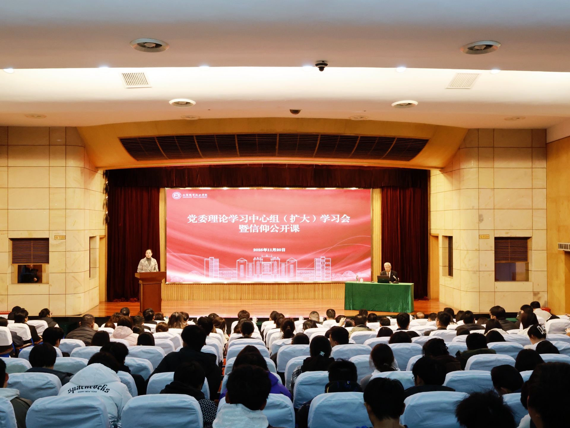 11月20日下午,av在线 召开党委理论学习中心组(扩大)学习会暨信仰公开课。院党委理论学习中心组全体成员,党群工作部、思政教研部全体人员,全体学工人员和学生代表参加会议。会议由院党委副书记、副院长梁薇主持。