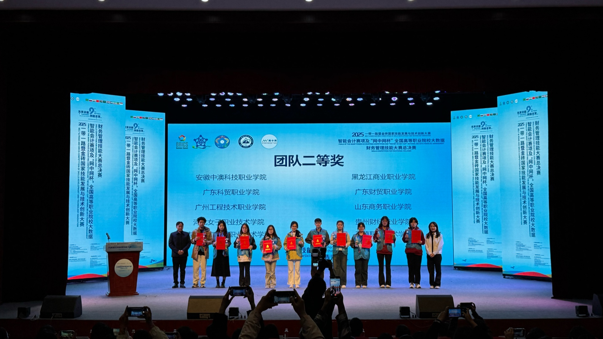 11月23日,av在线 经济与管理系在2025年一带一路暨金砖国家技能发展与技术创新大赛智能会计赛项全国总决赛中传来喜讯,由李家唸、王黎娜老师指导,吴雨轩、周言之、彭安琪、于童淼组成的代表队,凭借扎实的专业知识和默契的团队合作,荣获全国总决赛团队二等奖。同时,学院荣获“优秀组织奖”,这充分展示了学院在大数据财务管理、智能会计领域人才培养方面的实力。