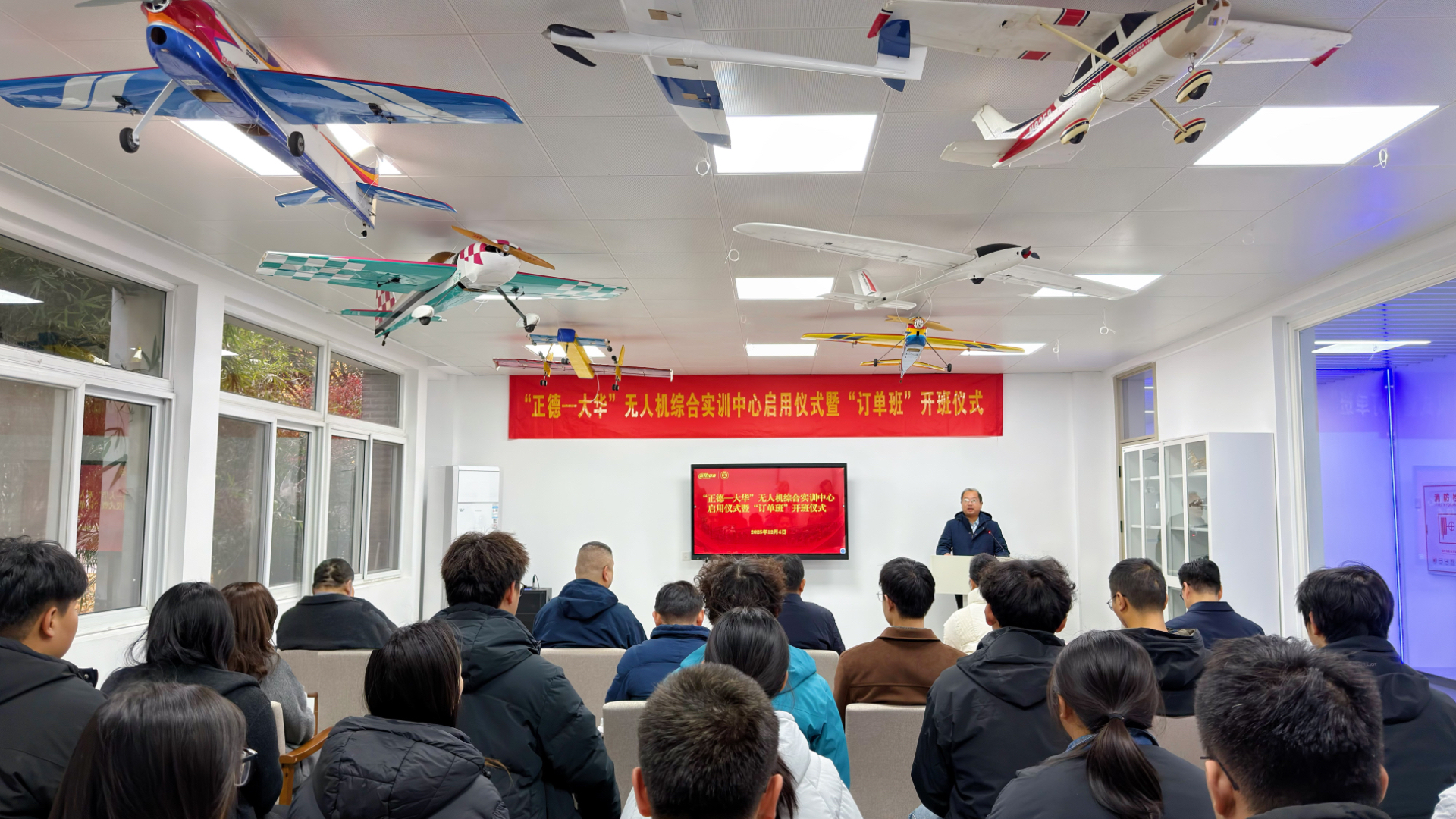 仪式上,孙永荣代表学院向长期关心支持学院发展的企业嘉宾致以诚挚谢意。他强调,低空经济是赋能产业升级、服务民生发展的新增长点与新质生产力重要载体,培养适配产业需求的高素质技术技能人才是职业教育的核心使命。此次学院联合浙江大华、苏州恒井泰等行业领军企业共建无人机综合实训中心、开设订单班,是落实“职普融通、产教融合、科教融汇”政策要求的生动实践,更是推进“人才定制化培养、精准化输送”的关键举措。学院将以此次合作为契机,充分发挥实训中心平台优势,推动课程内容与行业标准、企业需求精准对接,把真实项目、前沿技术融入教学全过程,着力培养兼具扎实理论功底与过硬实操能力的低空经济领域专业人才,为产业高质量发展注入正德力量,助力破解“人才供需错配”难题。