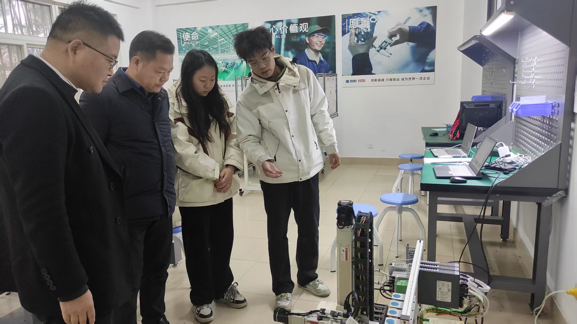 此次备赛工作2025年10月启动以来,得到学院高度重视与全力支持,院长孙永荣、副院长赵宇多次深入备赛现场指导工作,孙永荣作为视觉导航领域的专家,精准破解比赛攻关过程中的技术卡点,为核心算法优化指明方向,赵宇聚焦实操环节采光控制难题,提出了针对性的解决方案,指导教师团队充分吸纳两位领导的指导意见,对相关算法进行多轮迭代完善,有效提升设备运行的流畅性与稳定性,最终助力av在线 获得国赛二等奖,这份佳绩凝聚着领导与师生的同心协力。