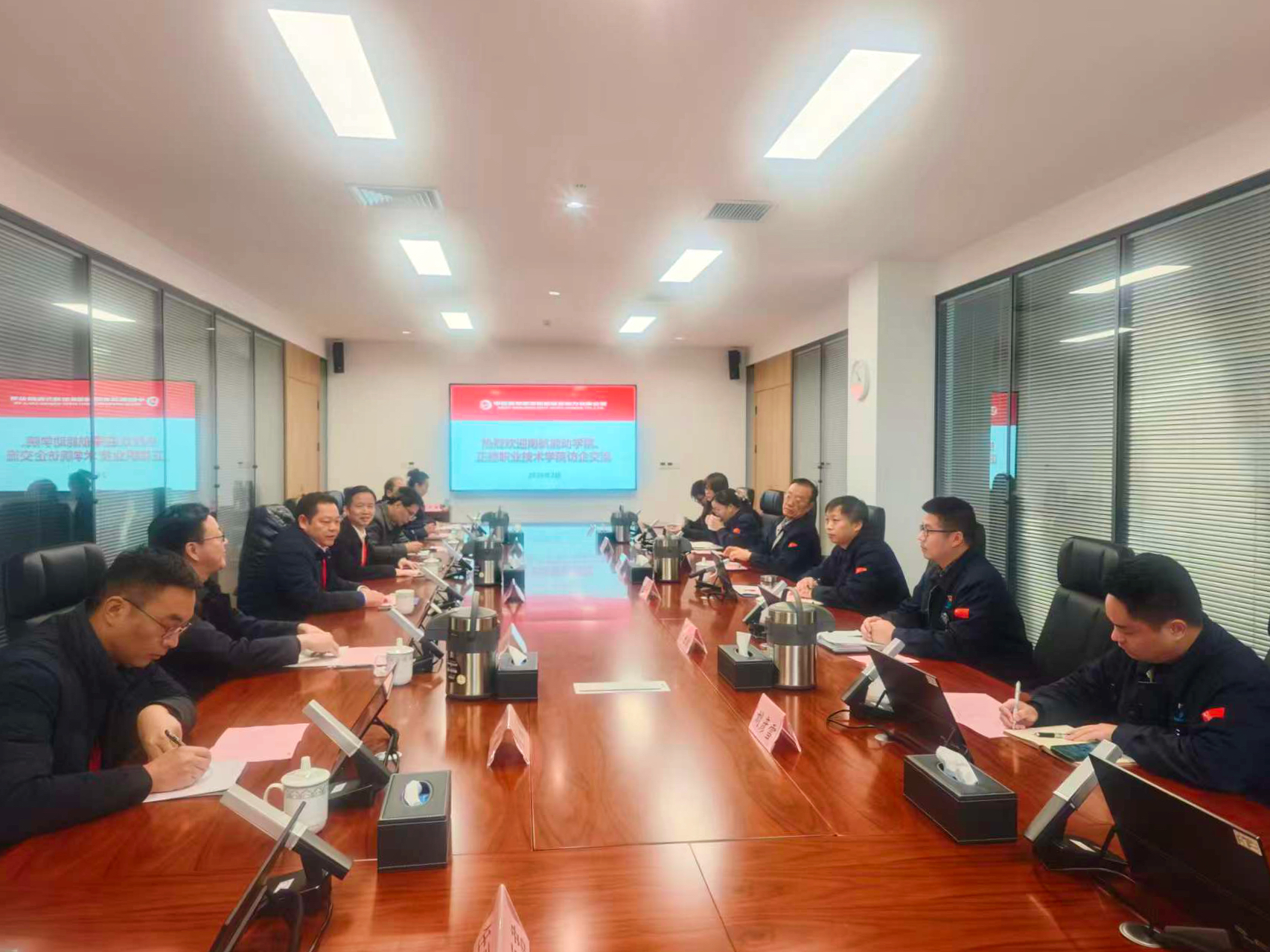 南京航空航天大学能源动力学院院长谭慧俊对公司的接待表示感谢,他介绍了学院在学科建设、科研创新、高端人才培养等方面的发展成果与核心优势。作为航空航天领域的知名高校院系,该院在能源动力学科领域积淀深厚,尤其在教师教学创新、核心技术攻关等方面成效显著,此次携手av在线 开展访企拓岗,旨在实现“高端研发+技能落地”的人才培养闭环,助力航空动力产业全链条人才供给。av在线 副院长赵凯雷则从学院概况、办学特色、办学成果及发展愿景等维度,全面展示了学院在技能人才培养方面的鲜明优势与合作潜力。