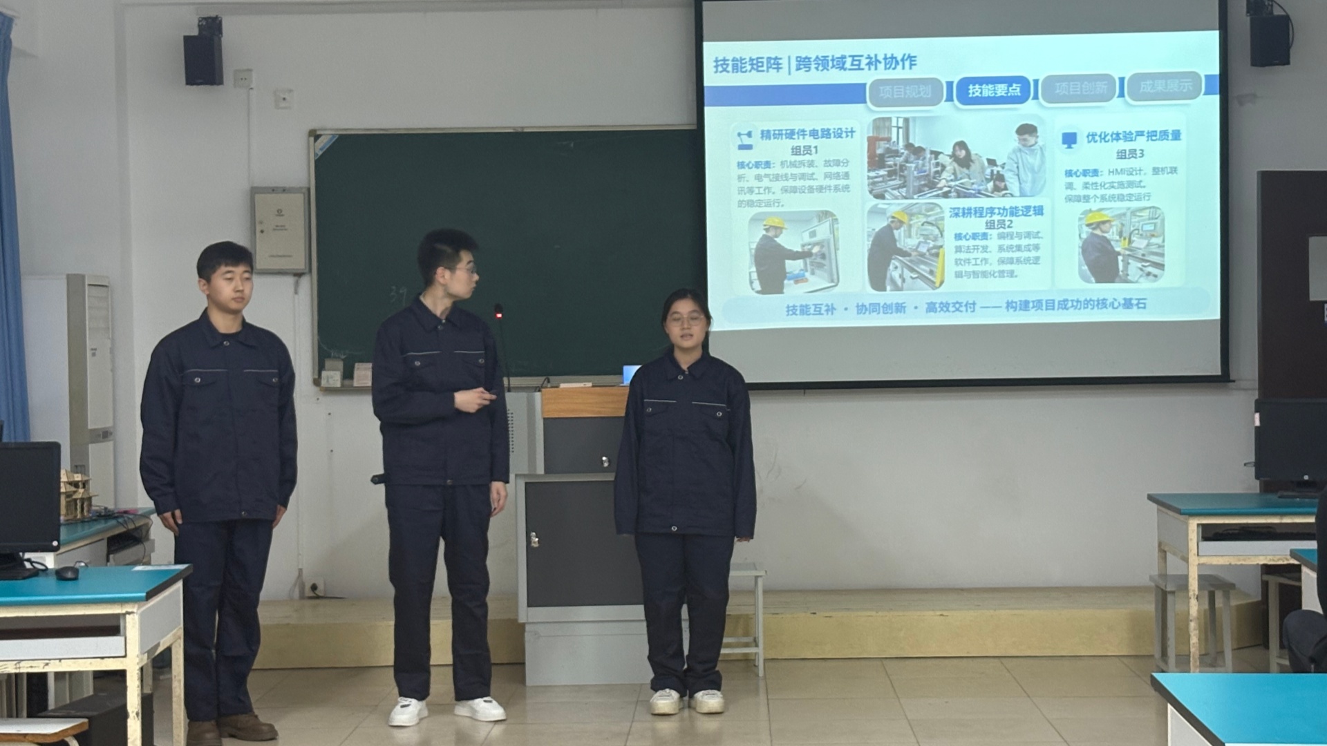本次赛事时间紧、任务重、技术难度高。作为首次参赛队伍,胡娅莉、汪秀两位老师带领三名学生从零起步,认真研读赛项规程,逐一破解技术难题。备赛期间,大家主动放弃寒假与周末休息时间,全天候坚守实训室潜心钻研。从硬件搭建到软件调试,从逻辑优化到界面完善,从生疏操作到熟练驾驭,团队历经反复打磨、深夜攻坚与迭代优化,以实干与汗水诠释了精益求精的工匠精神。学院高度重视本次竞赛,教务处、后勤保卫处等职能部门全程鼎力支持、全方位做好服务保障,为参赛团队潜心备战创造了良好条件。最终,全体师生同心协力、攻坚克难,圆满完成各项竞赛任务并荣获佳绩。
